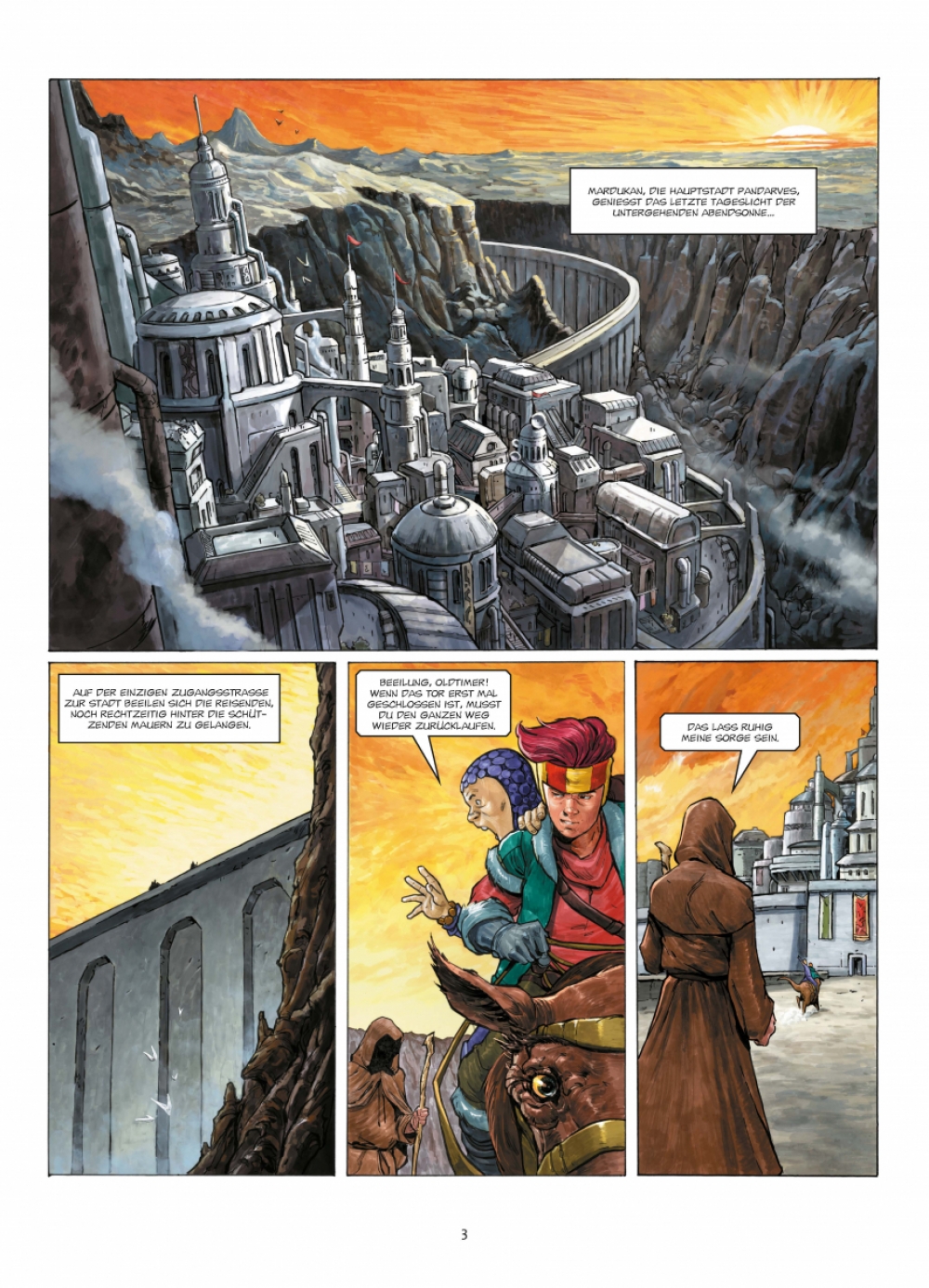 Sein Name ist Storm. Ein Astronaut des 21. Jahrhunderts. Bei einem Routineflug gerät er in einen kosmischen Wirbelsturm. Dort wird er tausende Jahre in die Zukunft geschleudert und muss bald erkennen, dass es für ihn niemals eine Rückkehr in seine eigene Zeit geben wird.Gemeinsam mit Rothaar verschlägt es ihn auf den lebenden Planet Pandarve, wo andere Naturgesetze gelten als auf der Erde. Schnell geraten die beiden Abenteurer ins Visier des machthungrigen Theokraten Marduk und sind fortan mit ihrem Gefährten Nomad ständig auf der Flucht.