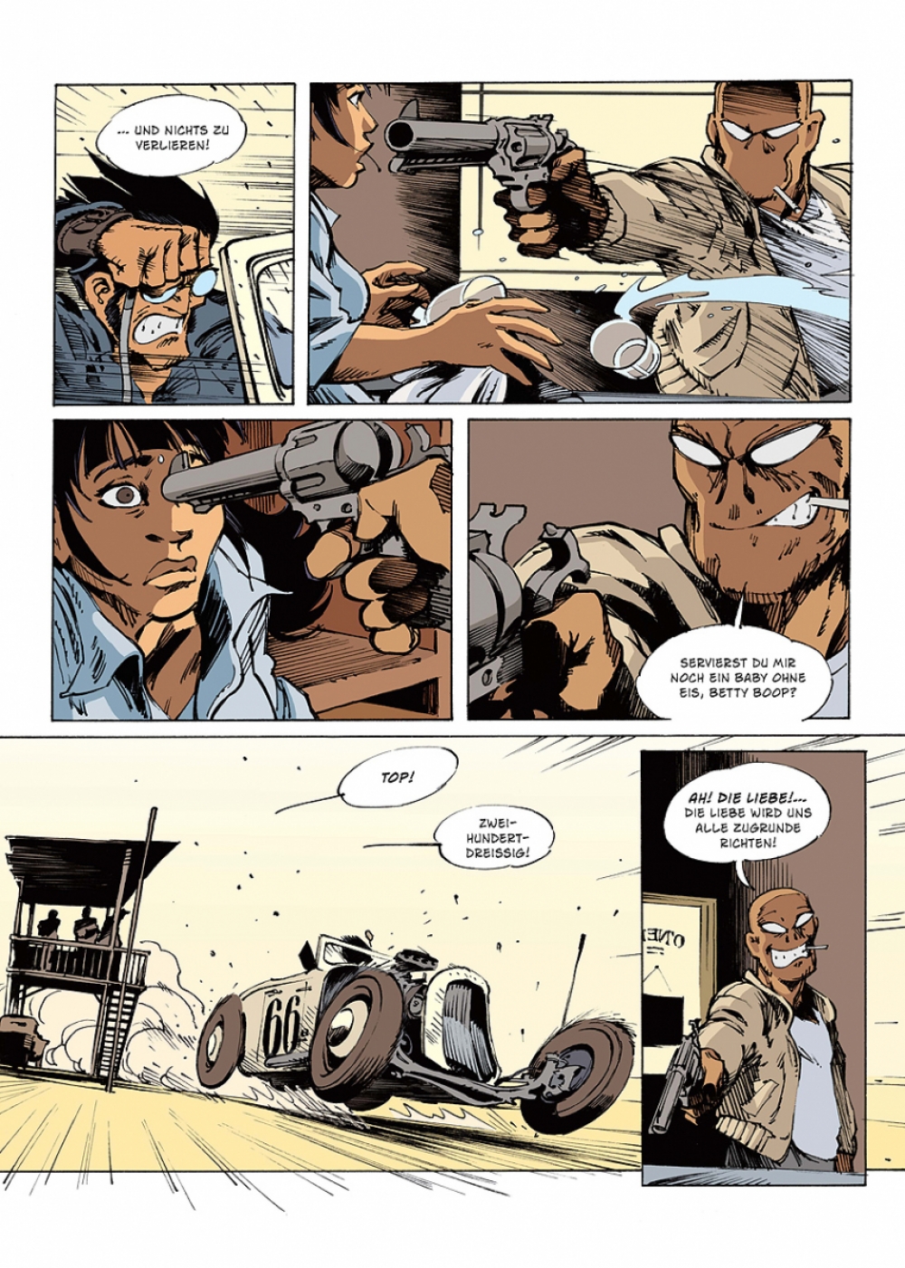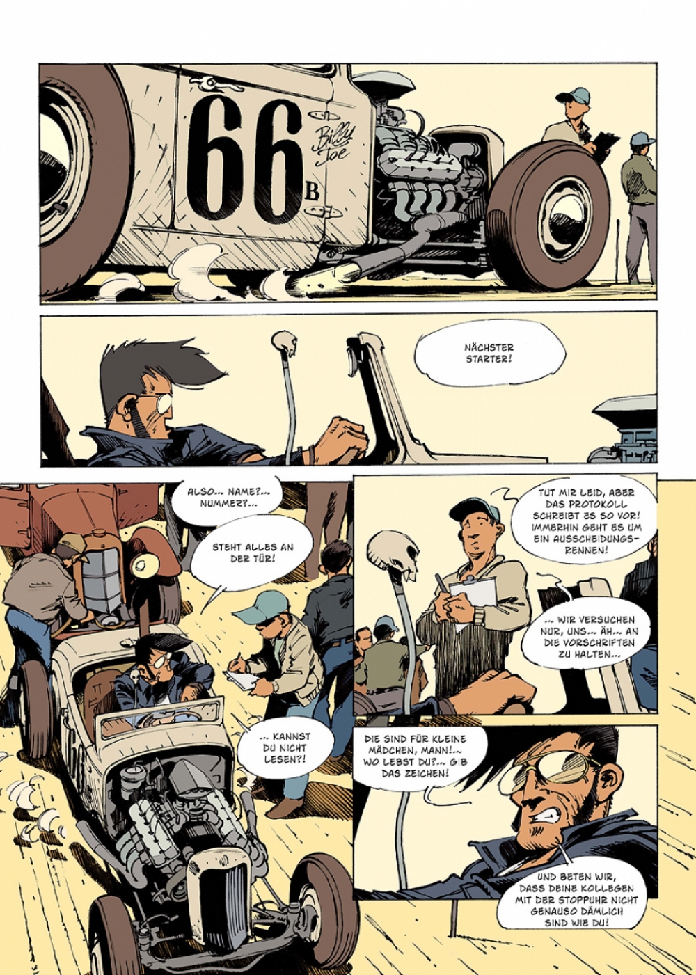 Irgendwo mitten in der Wüste, an der Route 666 (natürlich), liegt die heruntergekommene Tankstelle des alten O‘Neil. Zu sagen, dass hier nichts los ist, wäre noch stark untertrieben. Das ändert sich schlagartig, als Billy Joe mit seiner Bande motorisierter Desperados aufkreuzt. Einmal im Jahr wird in einem wilden, ungezügelten Freistilrennen »The Leader of the Pack« ermittelt, der Boss der automobilen Outlaws, und das abgelegene Areal rund um O‘Neils »Lisa Dora Station« ist wie geschaffen dafür. Die Tankstelle wird nun im Nu zum Treffpunkt der Tempo- und Tuningfanatiker und zum Magneten für zwielichtige Gestalten, sodass es nicht lange dauert, bis sich auch FBI und Fernsehen hinzugesellen. Und mittendrin in dieser hochexplosiven Mischung aus Adrenalin und Benzindunst, Staub und Schweiß versucht O‘Neils Tochter Cristal verzweifelt zu retten, was zu retten ist, denn ihr Vater als alter Hot-Rod-Veteran ist drauf und dran, alles aufs Spiel zu setzen, was ihm noch geblieben ist. Das heißeste Rennspektakel seit »The Fast and the Furious«.