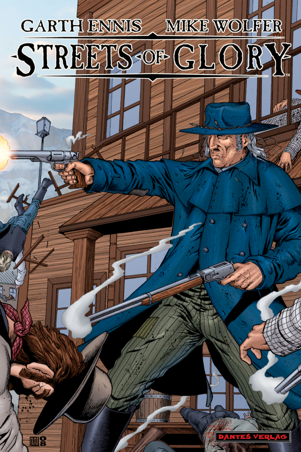 In Streets of Glory reitet eine lebende Legende in ihre letzte Schlacht. Geschrieben von Garth Ennis (The Boys, Code Pru) und gezeichnet von Mike Wolfer (Lady Death, Gravel).
