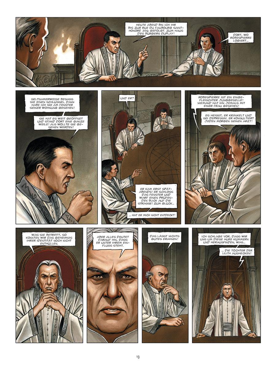 Paris, 8. November 1793. Die Stadt befindet sich unter der Terrorherrschaft von Robespierre. Während die Girondistin Manon Roland zum Schafott geführt wird, empfängt der unbeugsame Maximilien de Robespierre in seinem Haus wie gewöhnlich den Besuch der dämonischen Camilla. Doch diesmal wurde die dunkelhaarige Schönheit von einer geistlichen Bruderschaft bespitzelt, die nun endlich die Gelegenheit sieht, eine Vertreterin des uralten Frauenordens der Töchter von Lilith aus dem Weg zu räumen. Denn die Männer Gottes sind davon überzeugt, dass Camilla und Robespierre in einen furchtbaren Komplott verstrickt sind, der sich auf die gesamte Nation auswirken könnte!