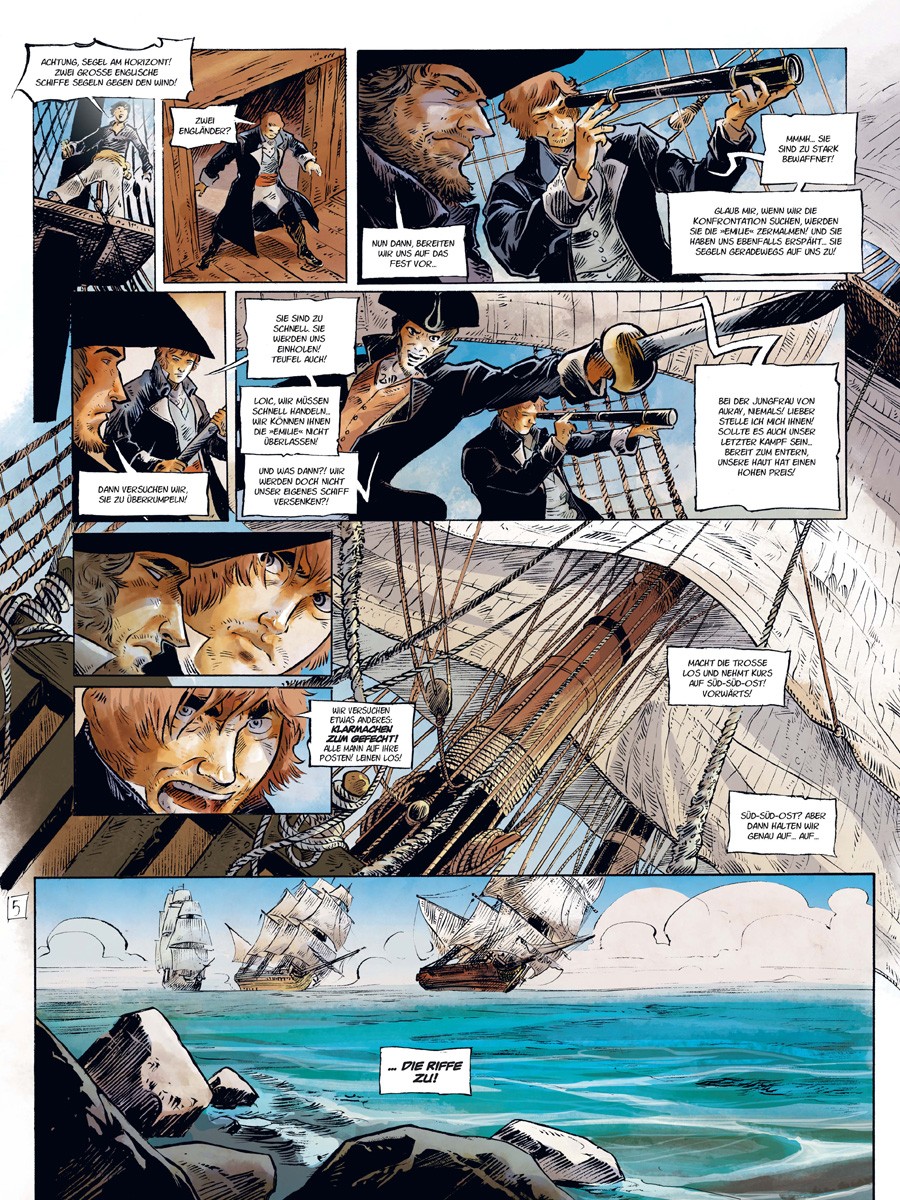 Ende des 18. Jahrhunderts. Die Revolutionskriege erschüttern Europa, doch England beherrscht die Meere. Der König von Frankreich greift auf private Reeder zurück, die Abenteurern die Möglichkeit bieten, sich auf Kosten des Feindes zu bereichern. Ein offizielles Dokument, der »Kaperbrief«, legt den gesetzlichen Rahmen fest. Die Korsaren sind keine Piraten, sie dürfen ausschließlich Schiffe angreifen, die sich im Krieg mit ihrem Land befinden oder feindliche Güter transportieren.