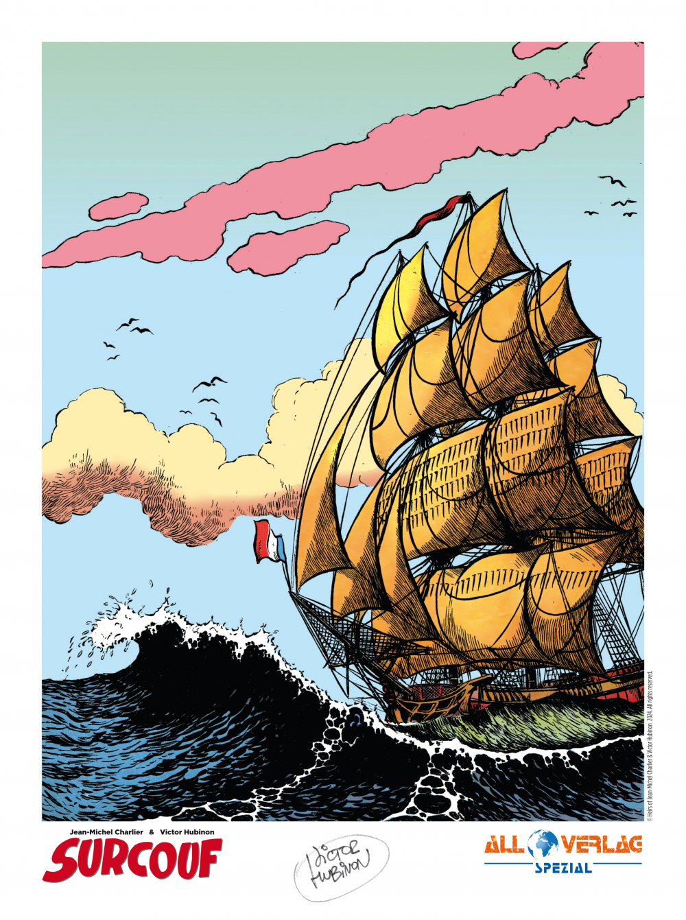 Ende der 1940er-Jahre ließ das Kreativgespann Jean-Michel Charlier und Victor Hubinon (Buck Danny) für die frankophonen bandes dessinées die französische Variante des Kaperfahrers vom Stapel. Die ohne Unterbrechung von November 1949 bis Juni 1952 im Spirou-Magazin veröffentlichte Biographie des Korsaren Robert Surcouf (1773–1827) geriet zum monumentalen Unterfangen. Im Mittelpunkt der in Deutschland nun endlich zur Veröffentlichung kommenden Serie Surcouf steht das abenteuerliche Leben des in Saint-Malo beheimateten Korsaren-Kapitäns, der zur Zeit der Revolutionskriege der englischen Flotte schwere Verluste zufügte.