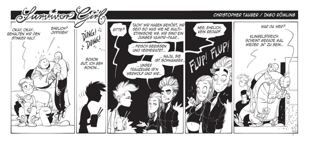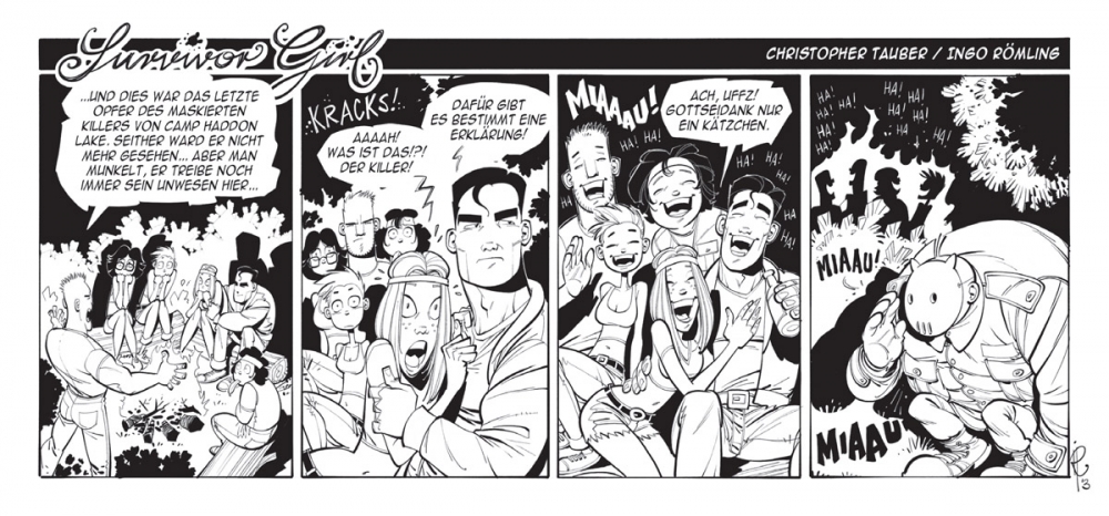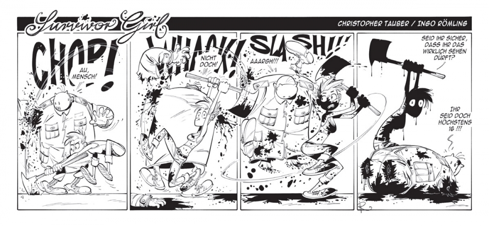 Nach zwei gemeinsamen Comics für Zwerchfells Zombie-Anthologie DIE TOTEN setzten Ingo Römling und Christopher Tauber ihre Zusammenarbeit in Form eines Webcomics fort: Tauber schrieb, Römling zeichnete. Das Projekt sollte beiden vor allem eins machen: Spaß. Also entschied man sich, dem gemeinsamen Steckenpferd Horror treu zu bleiben und gleichzeitig der beiderseitigen Vorliebe für alte MAD-Parodien zu huldigen. Ein lose erscheinender Webcomic, der sich liebevoll über die Stereotypen des Horrorfilms lustig macht, erblickte das Licht der Welt. Ob trendige Twilight-Vampire, langweilige Found-Footage-Video-Abende, japanische Smartphone- Dämonen oder das klassische Sommercamp-Massaker, hier ist für jeden schlechten Geschmack etwas dabei.