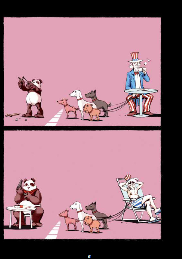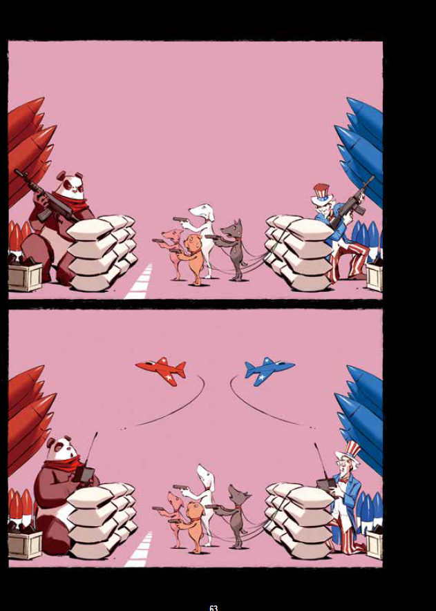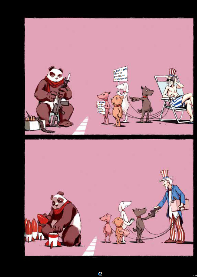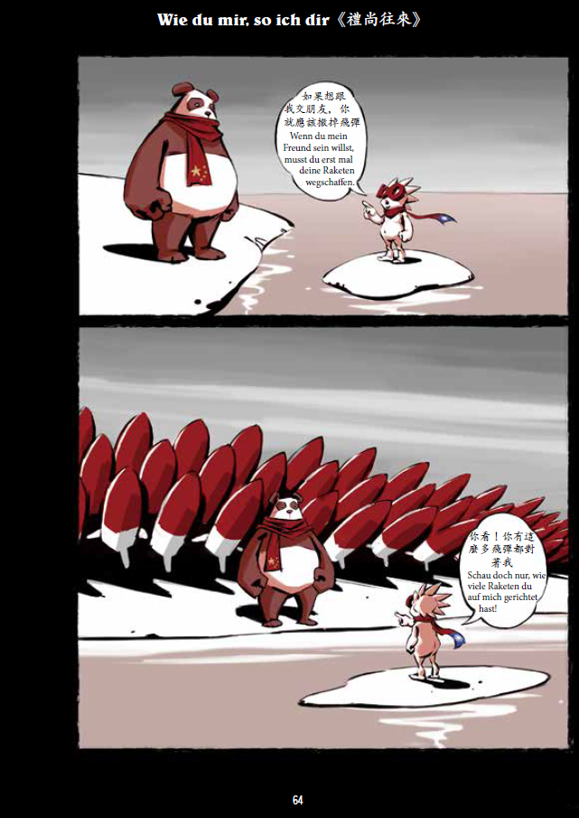 Der taiwanische Karikaturist Lao Pei macht sich auf politisch vollkommen unkorrekte Weise über die politischen Parteien und Parteienkämpfe in seinem Heimatland lustig, und er nimmt auf sarkastische Weise und mit bitter-zynischem Humor die Beziehungen zwischen Taiwan, China, den Vereinigten Staaten von Amerika und anderen Akteuren der Region wie Japan, Korea oder Russland auf die Schippe.