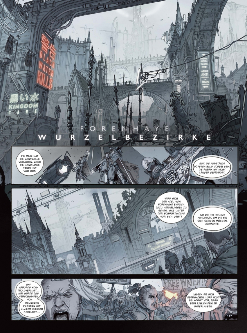 In ForenHaye, der letzten Bastion der Menschheit im Königreich Talion, stemmt man sich mit aller Kraft gegen die Auslöschung. Doch die Gesellschaft zersetzt sich gleichzeitig von innen: Hoch oben in den Wipfeln der Zitadelle genießen die Adligen sauberes Wasser und reine Luft, während die Ärmsten in den Wurzelbezirken verzweifelt um jeden Schluck und jeden Atemzug ringen. Als eine wohltätige Tochter aus gutem Hause durch Zufall auf einen seltsamen Streuner trifft, der in den Ruinen der alten Stadt nach einem Heilmittel sucht, wird ein Funke der Hoffnung entfacht. Vielleicht können die siechende Menschheit und die sterbende Natur doch noch zueinander finden.