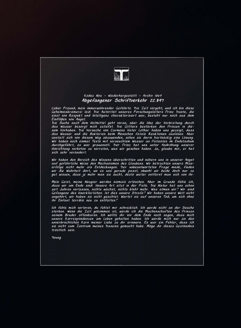 In ForenHaye, der letzten Bastion der Menschheit im Königreich Talion, stemmt man sich mit aller Kraft gegen die Auslöschung. Doch die Gesellschaft zersetzt sich gleichzeitig von innen: Hoch oben in den Wipfeln der Zitadelle genießen die Adligen sauberes Wasser und reine Luft, während die Ärmsten in den Wurzelbezirken verzweifelt um jeden Schluck und jeden Atemzug ringen. Als eine wohltätige Tochter aus gutem Hause durch Zufall auf einen seltsamen Streuner trifft, der in den Ruinen der alten Stadt nach einem Heilmittel sucht, wird ein Funke der Hoffnung entfacht. Vielleicht können die siechende Menschheit und die sterbende Natur doch noch zueinander finden.