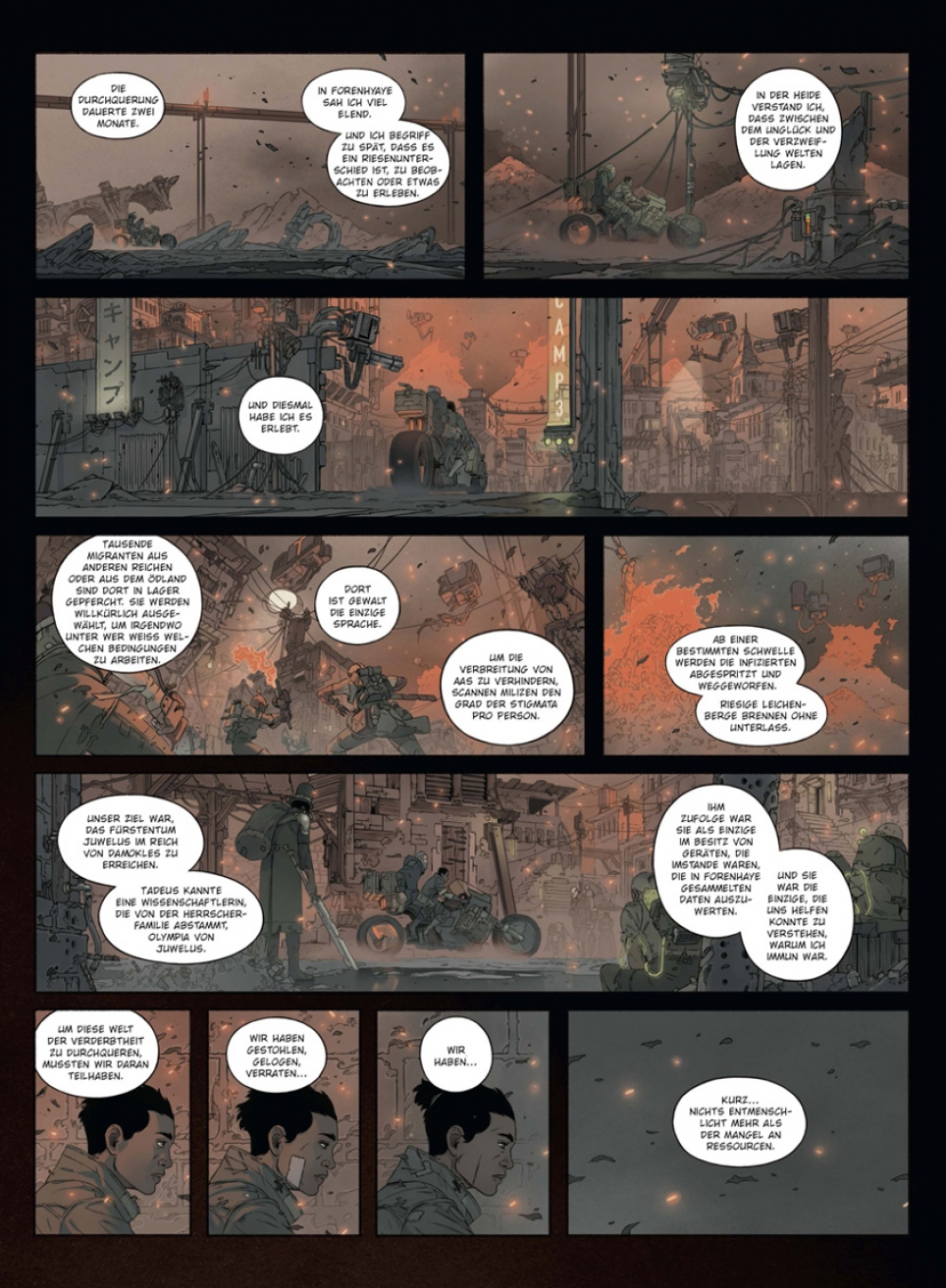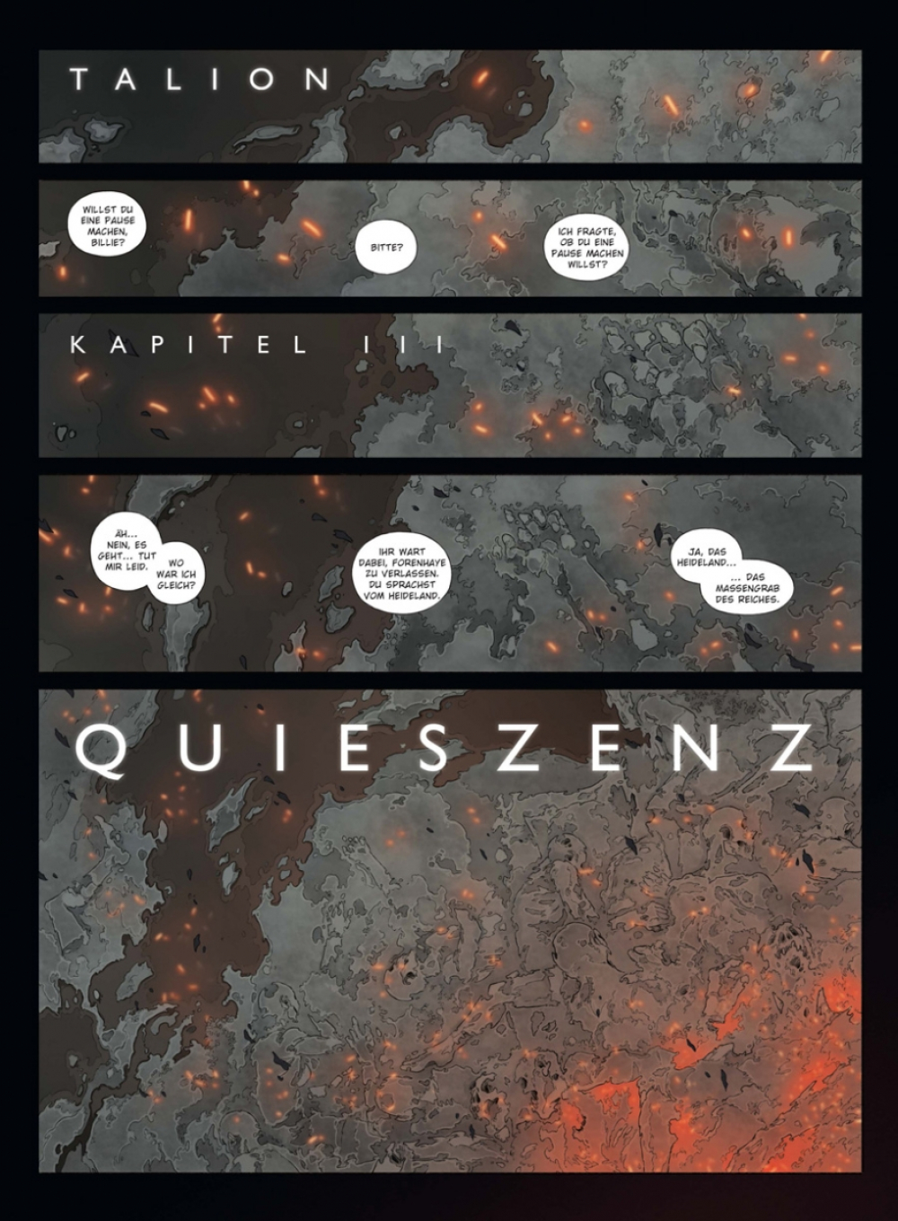 Sylvain Ferret verschreibt sich mit »Talion« einer Ästhetik, die er als »Gothic Cyberpunk« bezeichnet. Er öffnet für uns die Türen zu einer faszinierenden Welt, die wie ein dunkler Spiegel unserer eigenen wirkt. Verschwenderische Zeichenkunst sowie komplexe Charaktere und Themen machen diese Comic-Trilogie zu einem schwindelerregenden, süchtig machenden Erlebnis.