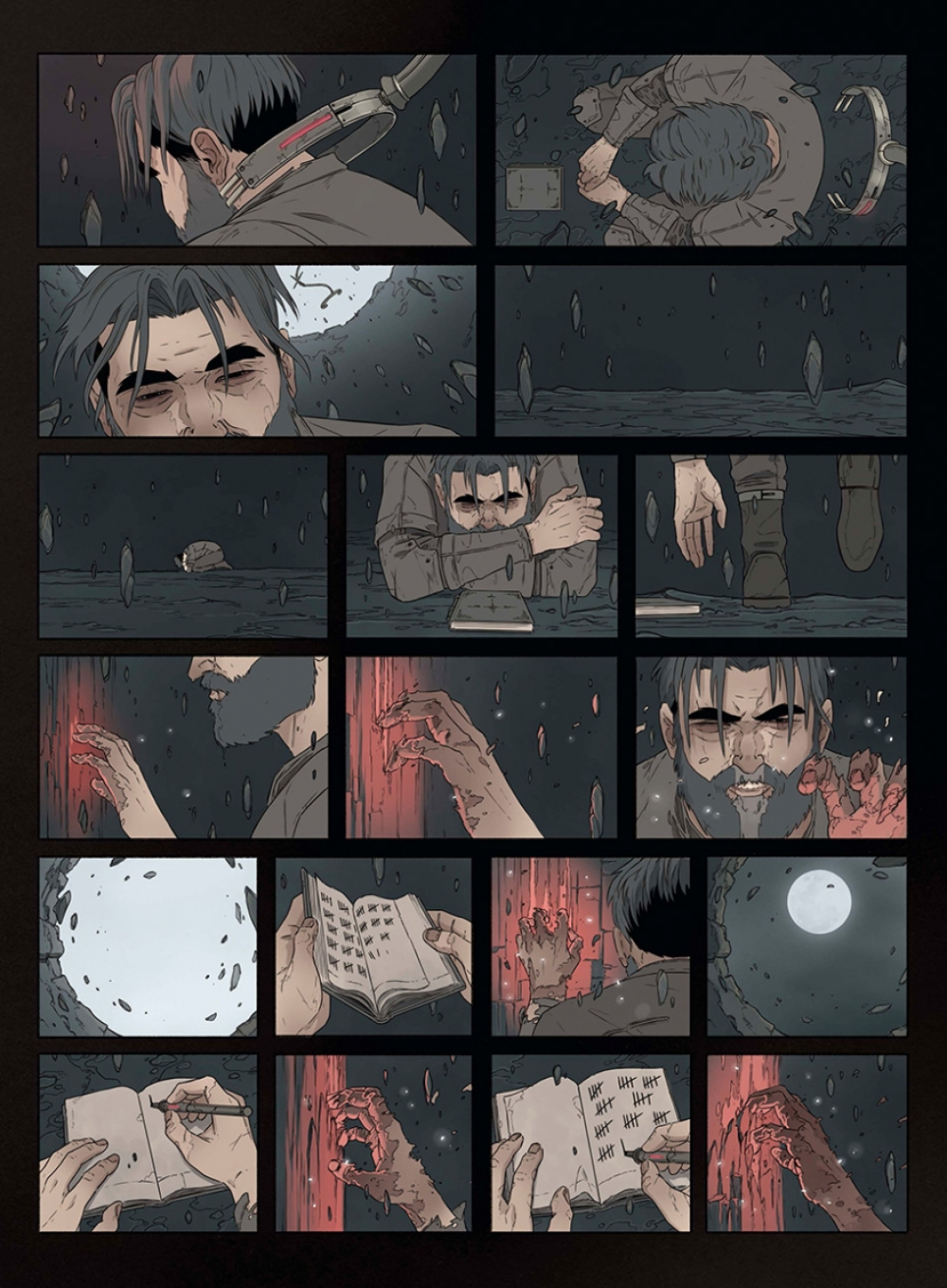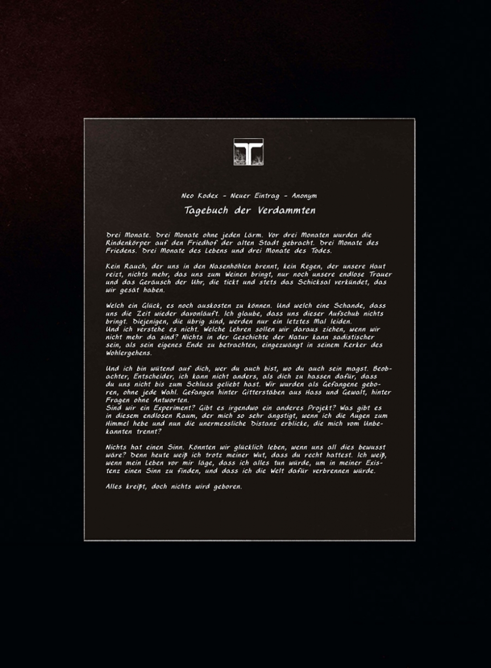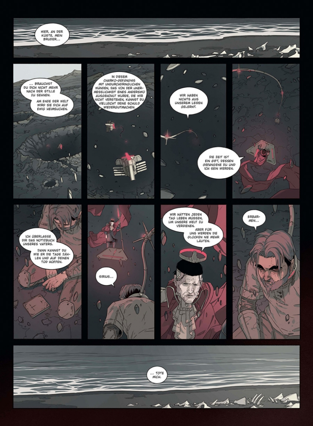 Es war die Seuche, die uns vernichtete. Sie drang ein in unsere Häuser und unsere Ernten, in unser Fleisch und in unser Blut, in unser Wasser, unseren Boden und in die Luft, die wir atmeten. Der ökologische Kollaps der Erde war gekommen. In ForenHaye, der letzten Bastion der Menschheit im Königreich Talion, kämpft man mit allen Mitteln ums überleben. Doch die Gesellschaft zersetzt sich gleichzeitig von innen: Abgeschieden in der Oberstadt genießen die Adeligen sauberes Wasser und reine Luft, während die ärmsten der Armen in den Wurzelbezirken verzweifelt um jeden Schluck und jeden Atemzug ringen. Als eine rebellische Tochter aus gutem Hause auf einen geheimnisvollen Streuner trifft, der in den Ruinen der alten Stadt nach einem Heilmittel sucht, wird ein Funke der Hoffnung entfacht. Vielleicht können die siechende Menschheit und die sterbende Natur doch noch zueinander finden. Sylvain Ferret verschreibt sich mit »Talion« einer ästhetik, die er als »Gothic Cyberpunk« bezeichnet. Er öffnet für uns die Türen zu einer faszinierenden Welt, die wie ein dunkler Spiegel unserer eigenen wirkt. Verschwenderische Zeichenkunst sowie komplexe Charaktere und Themen machen diese Comic-Trilogie zu einem schwindelerregenden, süchtig machenden Erlebnis.