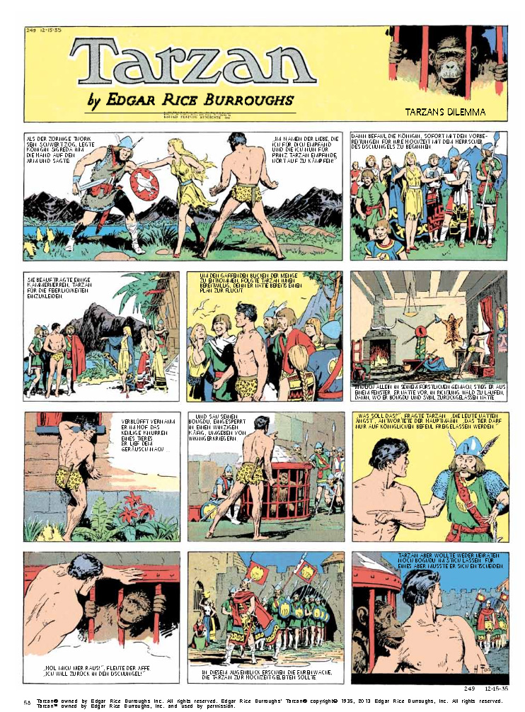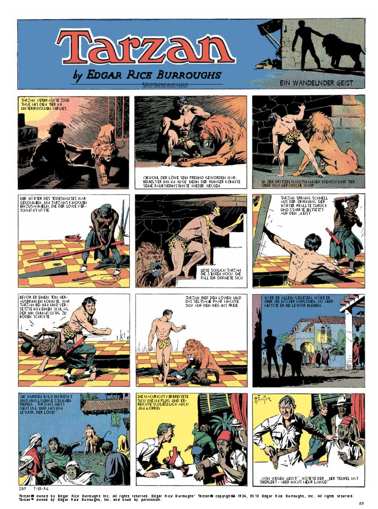 Zum Start wird dieser Band neben einem umfangreichen Vorwort von Detlef Lorenz auch die allererste Bildergeschichte (1928) von Hal Foster enthalten. In sehr detaillierten Schwarzweiß-Zeichnungen erzählt Foster, wie bei Tarzan alles begann.