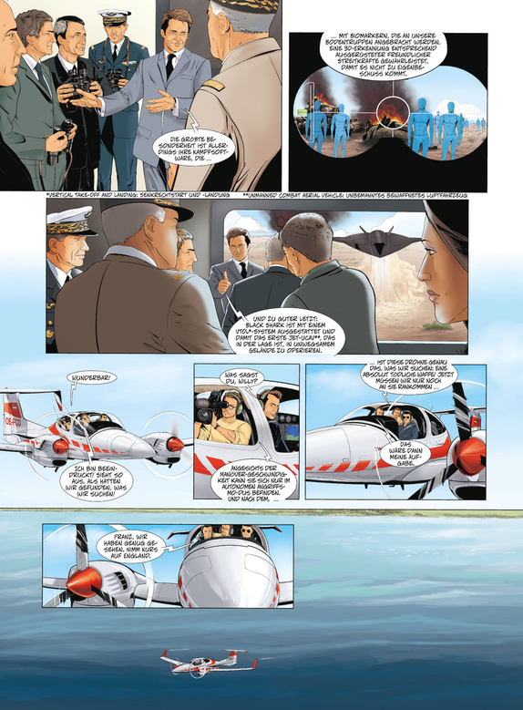Die Drohne Black Shark stellt bei einem Treffen französischer Generäle und Beamten auf eindrucksvolle Weise ihre Kampftauglichkeit unter Beweis. Die anlässlich einer internationalen Waffenmesse nach London geschickten Black Sharks werden mit einem Skycrane-Hubschrauber von einem geheimnisvollen paramilitärischen Kommando gestohlen.