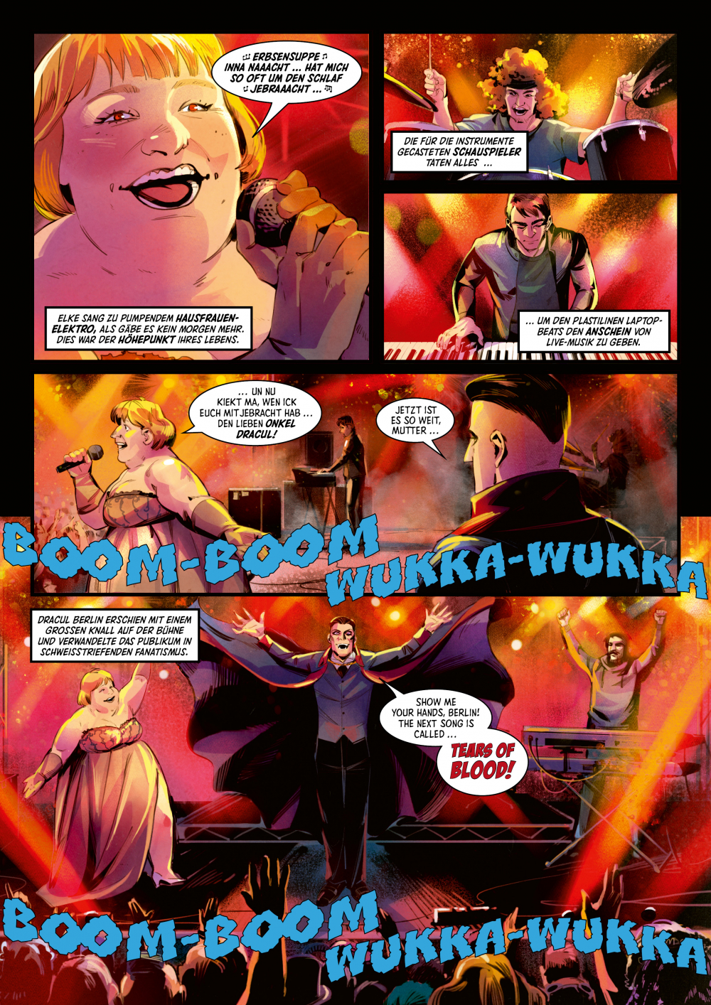 Unterdessen trachtet DRACUL BERLIN mit seiner Hausfrauen-Band ENGELSBLUT nach der Weltherrschaft – ein direkt aus DRACULS PENTHOUSE übertragenes ENGELSBLUT-Konzert soll die BürgerInnen der Bundesrepublik in GOTISCHE SCHWEINE-MUTANTEN verwandeln! Während die Überreste von DR. PATHOS im eisigen Norden Russlands in einer UNBESIEGBAREN KAMPFMASCHINE verbaut werden, findet ein einsames SCHULMÄDCHEN den murmelnden Kopf eines Orakels in einer Berliner Seitenstraße ...