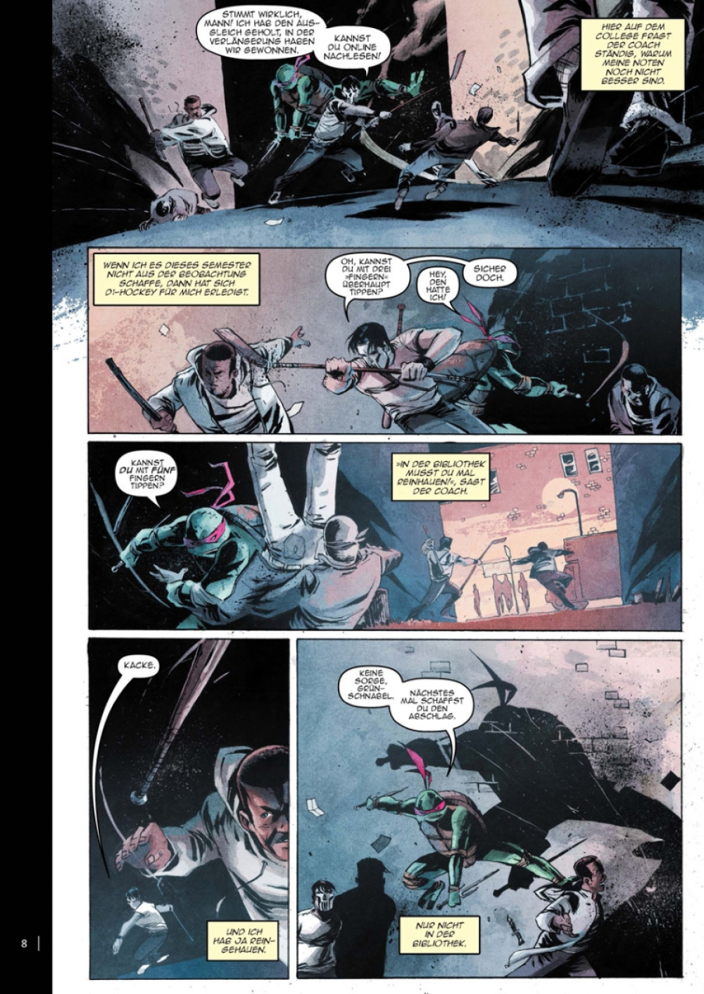 Band 2 beinhaltet die Hefte 13-20 der TMNT-Hauptserie sowie die Oneshots zu Casey Jones, April, Fugitoid, Krang und Baxter Stockman und die »Geheime Geschichte des Foot-Clan«-Miniserie.