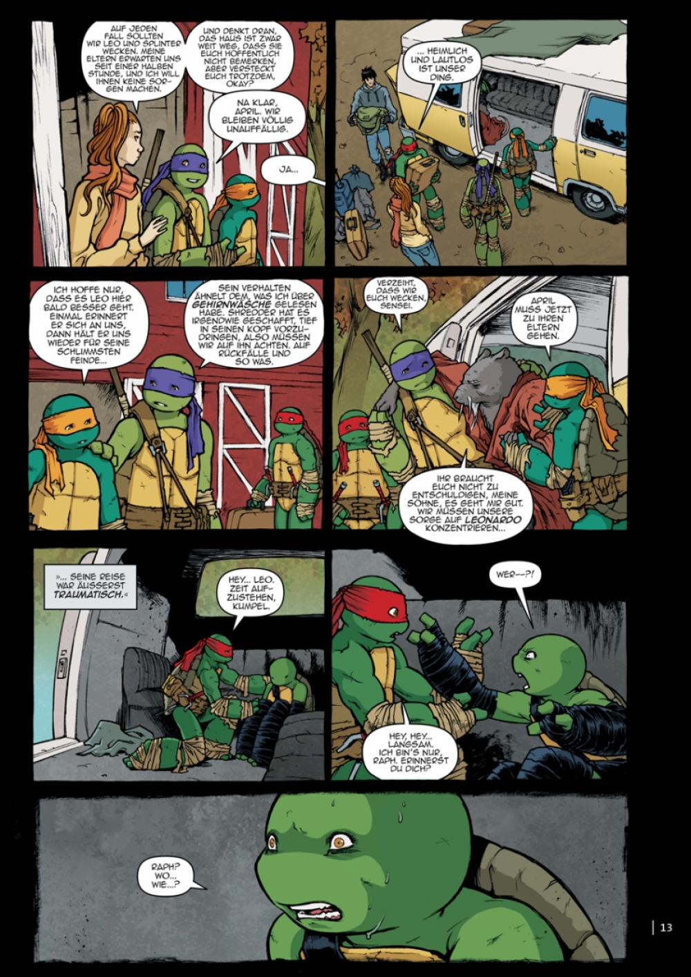 Die ultimative Ausgabe der Teenage Mutant Ninja Turtles! Erlebe sämtliche Abenteuer der heldenhaften Panzerkröten in der empfohlenen Lesereihenfolge, inklusive Oneshots, Crossover-Episoden und Special Events! Um sich von den vergangenen Ereignissen zu erholen, nehmen die Turtles sich eine Auszeit auf dem Land. Aber die Spannungen zwischen den Brüdern lösen sich dadurch nicht in Luft auf... in New York City nutzt Shredder ihre Abwesenheit, um seine Kontrolle über die Stadt zu festigen, und Krangs Plan zur Zerstörung der Erde nimmt ebenfall immer mehr Fahrt auf!