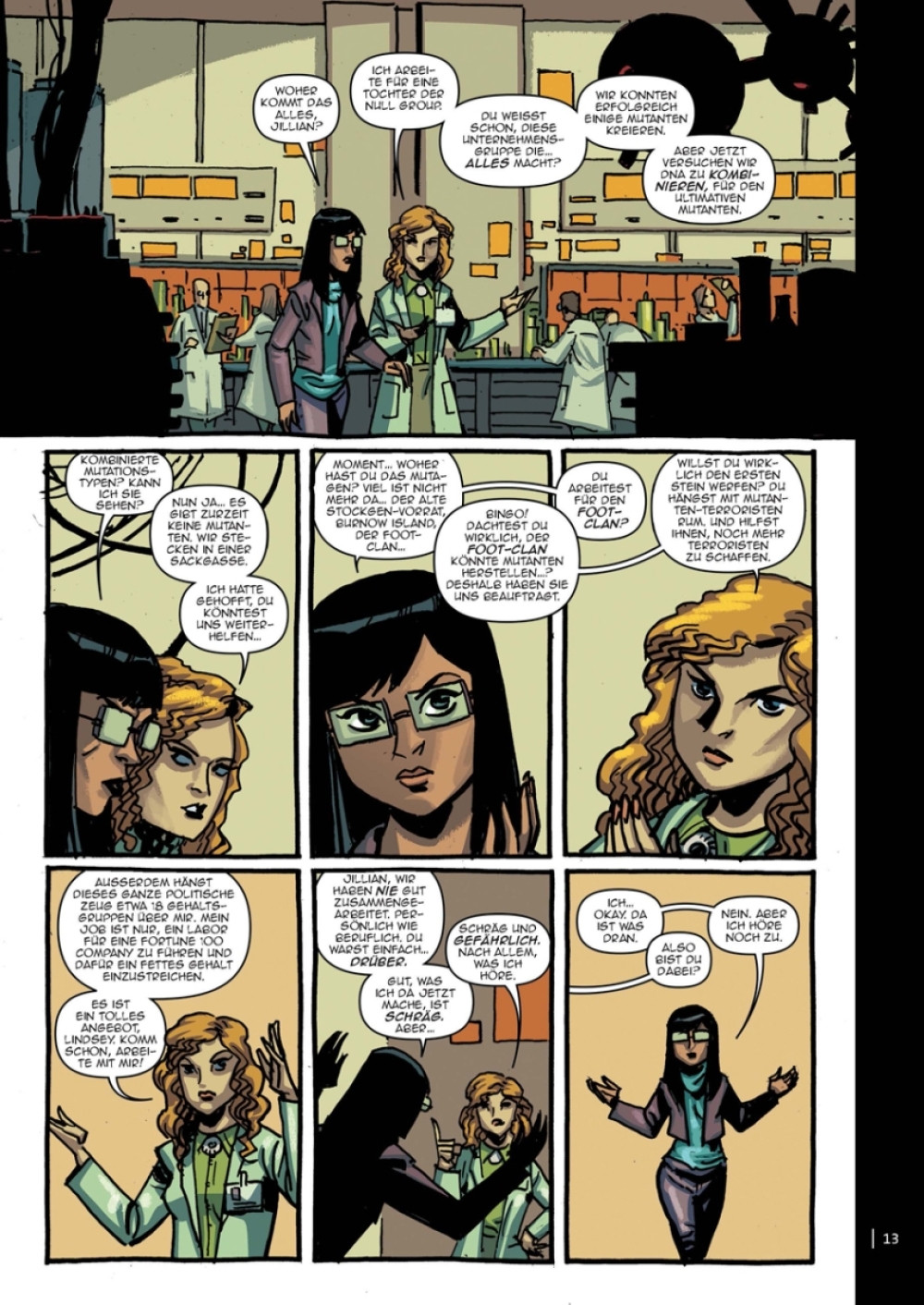 Erlebe sämtliche Abenteuer der heldenhaften Panzerkröten in der empfohlenen Lesereihenfolge, inklusive Oneshots, Crossover-Episoden und Special Events! Die Crew um Old Hob und Slash ist gefährlicher denn je, und als ein Freund der Familie gekidnappt wird, müssen die Turtles sich Hals über Kopf in ein wildes Abenteuer stürzen. Bei ihrer Rückkehr erwartet sie jedoch eine furchtbare Tragödie... Zeit für Trauer bleibt den Mutantenkröten aber nicht, denn der Foot-Clan ist auf Rache aus! Casey bereitet sich währenddessen auf einen allesentscheidenden Kampf mit Hun vor, und April hat eine uralte Schriftrolle gefunden, die mit dem mysteriösen Pantheon in Zusammenhang zu stehen scheint.