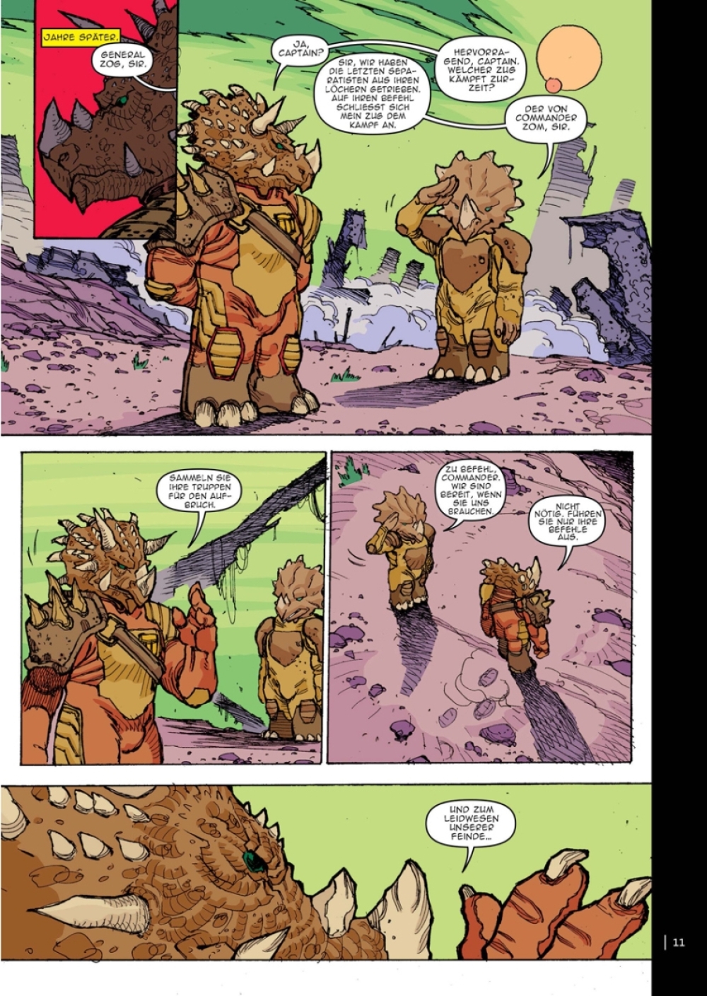 Band 11 beinhaltet die Hefte 76-84 der TMNT-Hauptserie, Heft 16-23 der »Teenage Mutant Ninja Turtles Universe«-Serie sowie die »Donatello«-Makroserie.