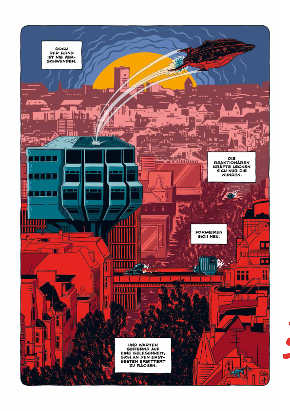 In TERROR 3000 kombiniert Bela Sobottke Retro-Science-Fiction, Utopie, Dystopie und Splatter zu einem grellbunten, schrecklich-komischen Erlebnis.