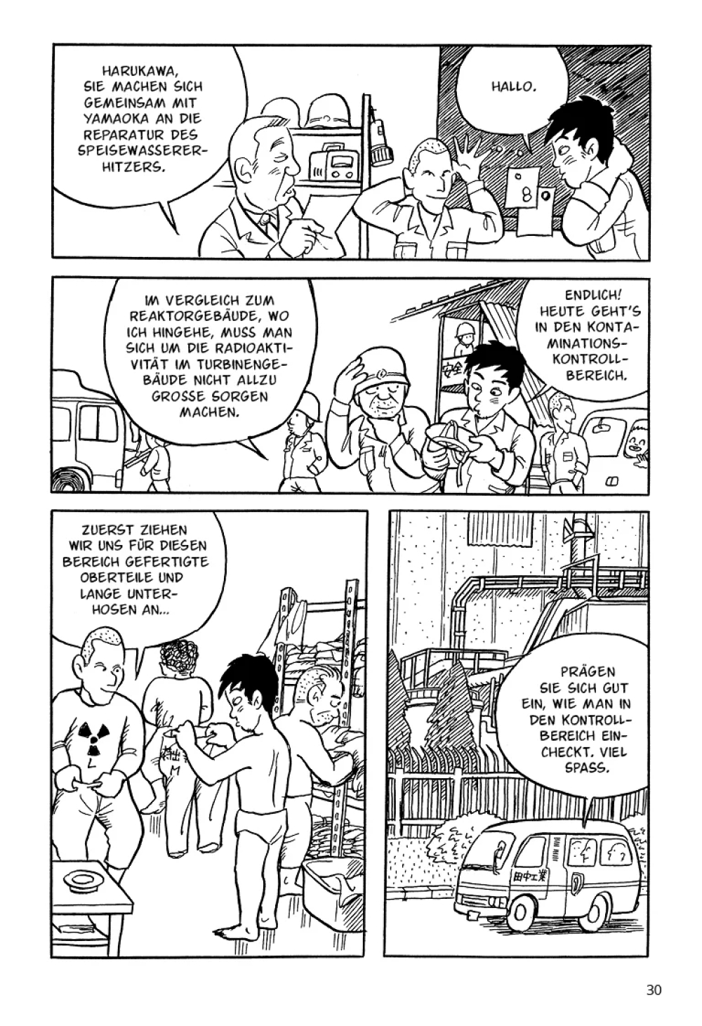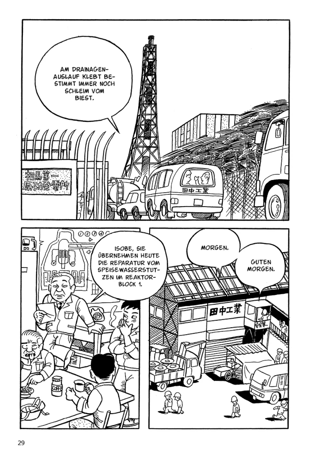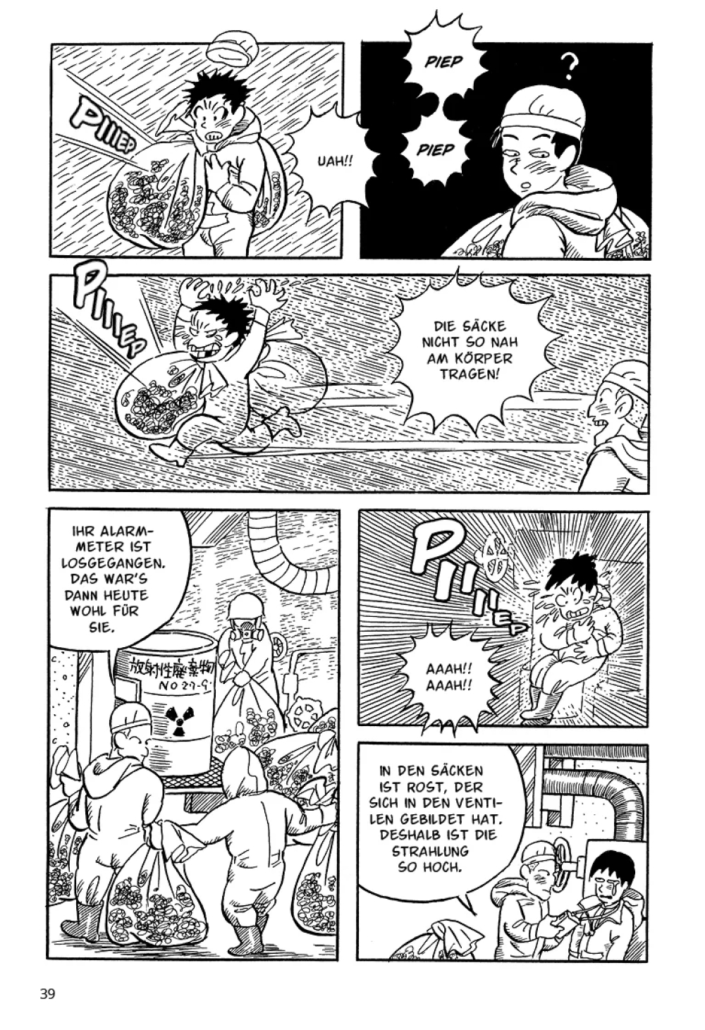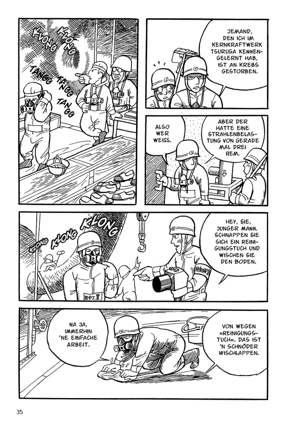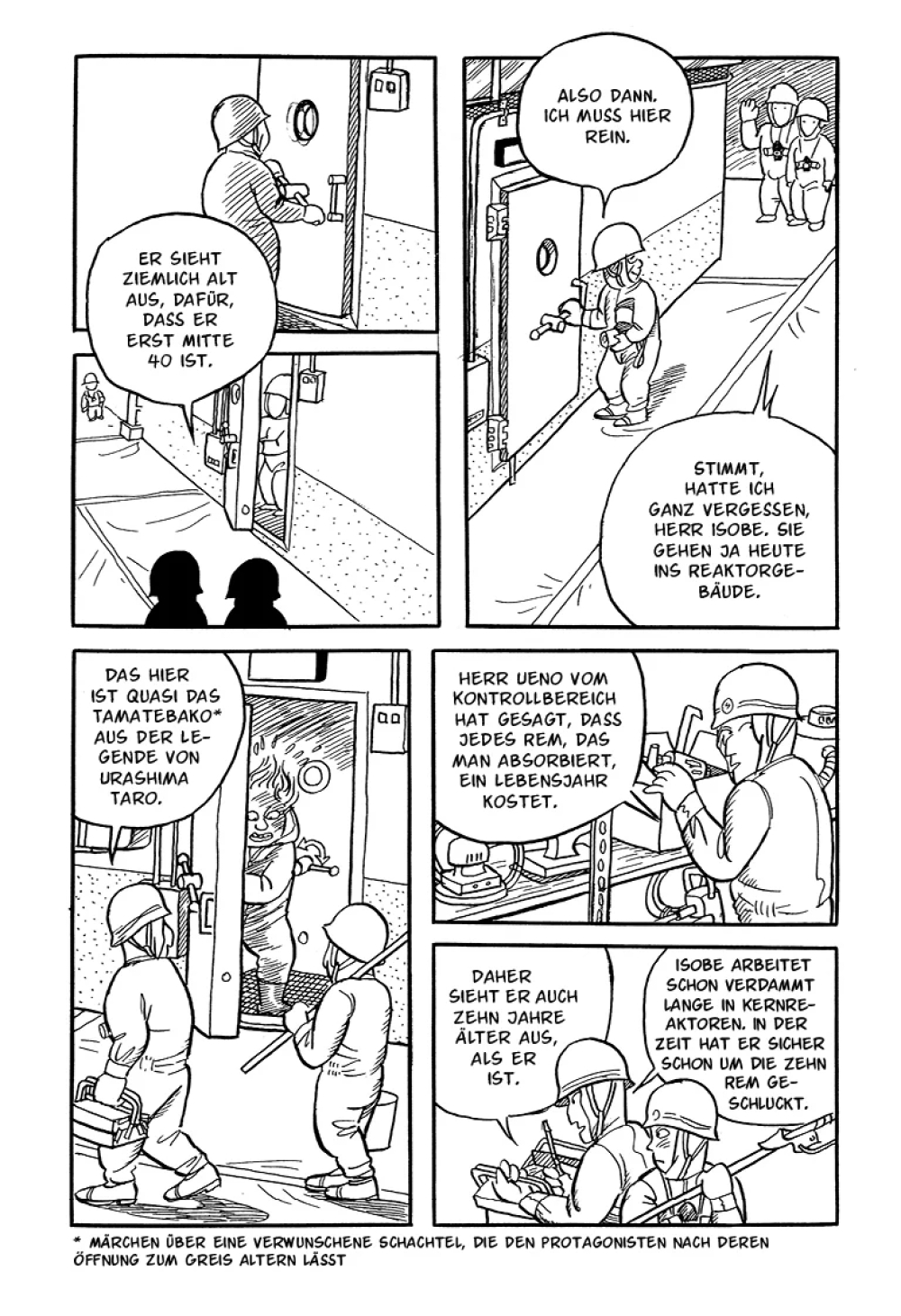 Zwei eindrucksvolle Erzählungen aus dem Leben der Wanderarbeiter in einem japanischen Atomkraftwerk bilden den Auftakt zu diesem Manga. Mehr als zwanzig Jahre vor der Nuklearkatastrophe in Fukushima 2011 nutzte Susumu Katsumata, der selbst Kernphysik studiert hatte, das Medium, um auf die Gefahren der Atomkraft und die prekären Bedingungen aufmerksam zu machen, unter denen in Japan Atomkraftwerke instand gehalten werden.