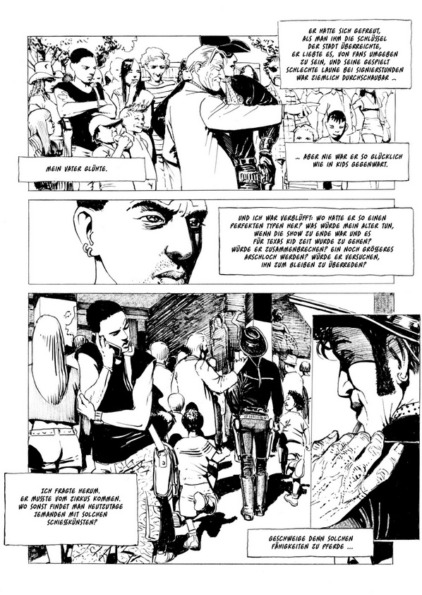 Ein Comiczeichner am Anfang seiner Karriere. Er will in die Fußstapfen seines Vaters treten, dem berühmten Schöpfer von Texas Kid, einem jener Westernhelden, denen alles zu gelingen scheint: Unglaubliche Kunststücke mit seinen Revolvern und auf seinem Hengst „Lucky“ paaren sich mit einem makellosen Äußeren.