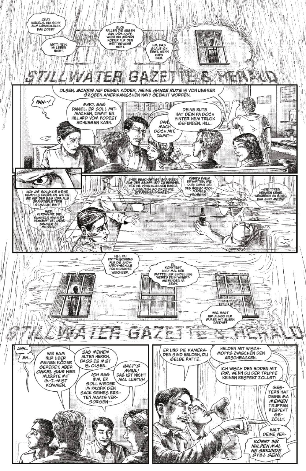 Dieser verstörende Comic spannt sich über vier Jahrzehnte amerikanischer Geschichte und erinnert daran, dass der Schrecken von gestern auch der Schrecken von heute ist. Ein üppiges, ambitioniertes und sämtliche Genregrenzen sprengendes Werk über die soziopolitischen Konflikte, die die Nation geprägt haben; ein historisches Horrorepos, das die Popkultur der I-Love-Lucy-Ära mit bizarrem Bodyhorror vereint.