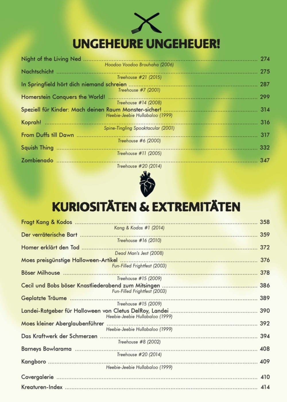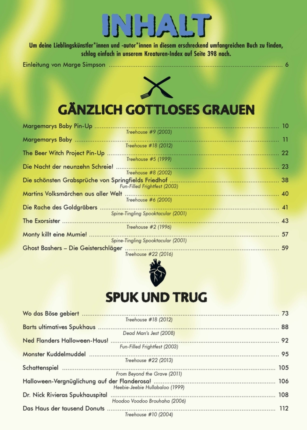 Die ultimative Gesamtausgabe der beliebten »Simpsons Treehouse of Horror«-Comics! Im »Treehouse of Horror« begann 1995 die unheimliche Verbindung des gruseligsten aller Feste und der berühmtesten aller TV-Familien – unheimlich komisch und unheimlich starbesetzt! 23 Spezialausgaben der »The Simpsons«-Comics sind seitdem erschienen und bringen das Who’s Who von Springfield mit den kultigsten Klassikern aus Horror, SciFi und Fantasy zusammen. Darüber hinaus haben sich im Laufe der Zeit zahlreiche herausragenden Comic-Schaffende im »Treehouse of Horror« verewigt. toonfish veröffentlicht alle Hefte der »Simpsons Treehouse of Horror«-Serie in 3 umfangreichen Hardcover-Sammelbänden – selbstverständlich in bestmöglicher Aufmachung. Ein absolutes Fest für Simpsons-Fans und ein Must-Read zu Halloween!