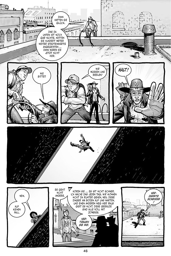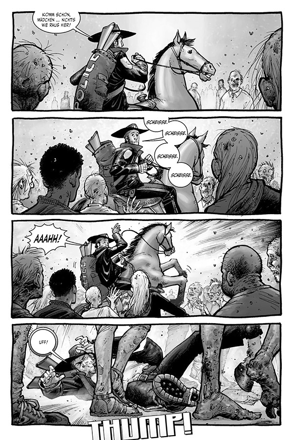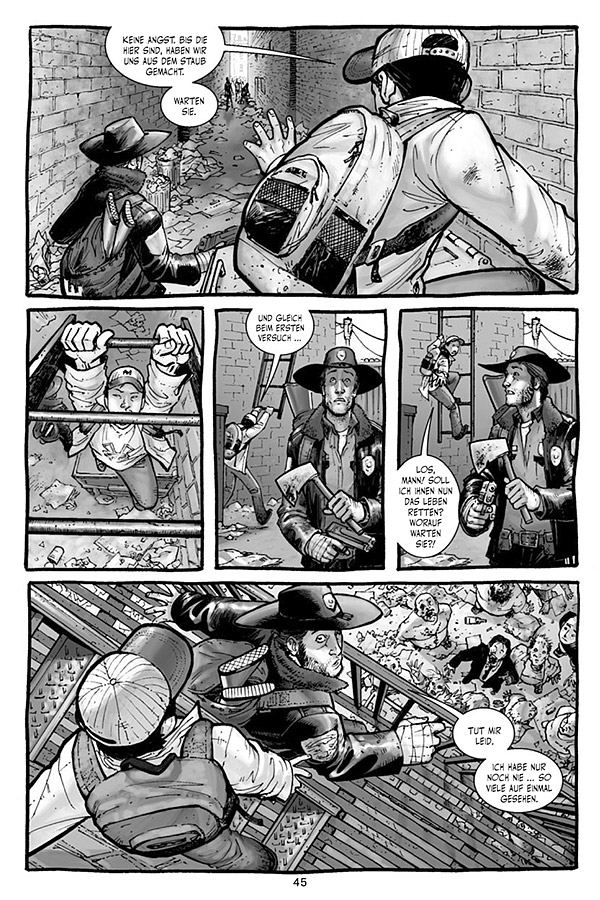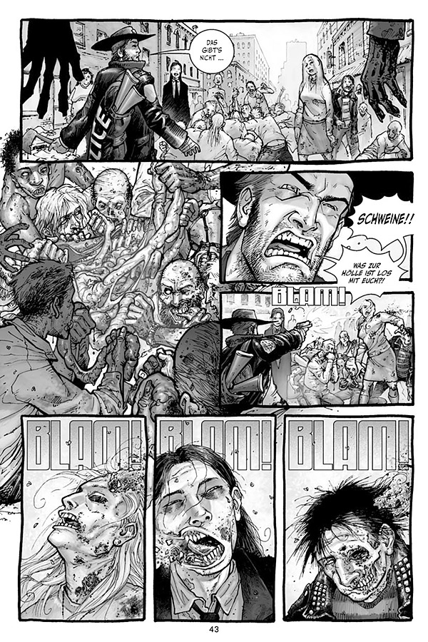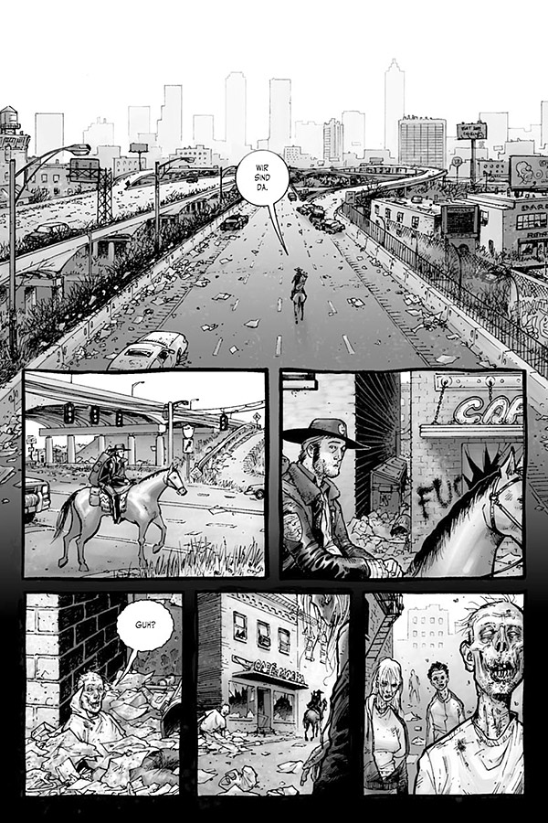 'In The Walking Dead', so Autor Robert Kirkman, 'möchte ich untersuchen, wie Menschen mit extremen Situationen umgehen und wie solche Ereignisse sie verändern.' Rick Grimes Odyssee durch ein untotes Amerika ist eine Reise zur Erkenntnis, was Leben wirklich bedeutet. Aufgrund der einfühlsamen Erzählweise und der markanten schwarz-weiß- Zeichnungen wurde diese Serie zu einem der meistgelobten US- Independent-Titel der letzten Jahre.