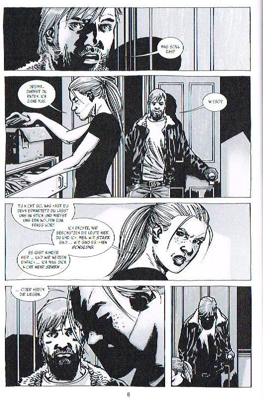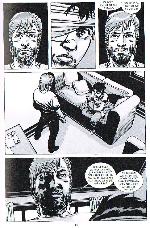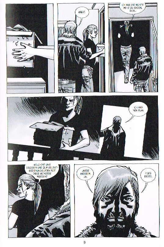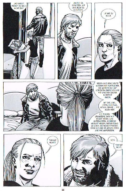 Während die meisten auf eine schnelle Vergeltungsaktion hoffen, sieht Rick den einzigen Ausweg aus der neuen Gefahrenlage, die die Bedrohung durch den skrupellosen Anführer der Erlöser und seine unüberschaubare Armee darstellt, in der Anwendung praktischer Vernunft … sich kleinmachen, sich ducken heißt das Motto der Stunde, das er ausgibt. Damitaber können die wenigsten in Alexandria einverstanden sein, haben sie in der Vergangenheit doch einen völlig anderen Rick Grimes kennengelernt, einen, der sich wehrt und nie aufgibt. Besonders Andrea und Carl sind über das neue Wesen Ricks frustriert … Carl sogar so sehr, dass er beschließt sich ein Maschinengewehr zu schnappen und selbst auf die Jagd nach Negan zu gehen … mit irreparablen Konsequenzen! Unterdessen heftet sich Jesus im Geheimen an die Fersen des wieder freigelassenen Erlösers Dwight, um alles über Negan und seine Basis herauszufinden, zieht sich Michonne immer weiter zurück und beginnen der Tüftler Eugene, Monroes Sohn Spencer und andere eigene Pläne zu schmieden. Alexandria steht kurz vor der Zusammenbruch … nie war die Gemeinschaft so zerbrechlich wie nach dem brutalen Tod Glenns und dem Umzug Maggies und Sophias auf die Anhöhe!