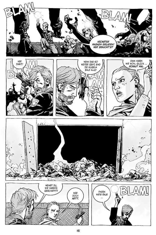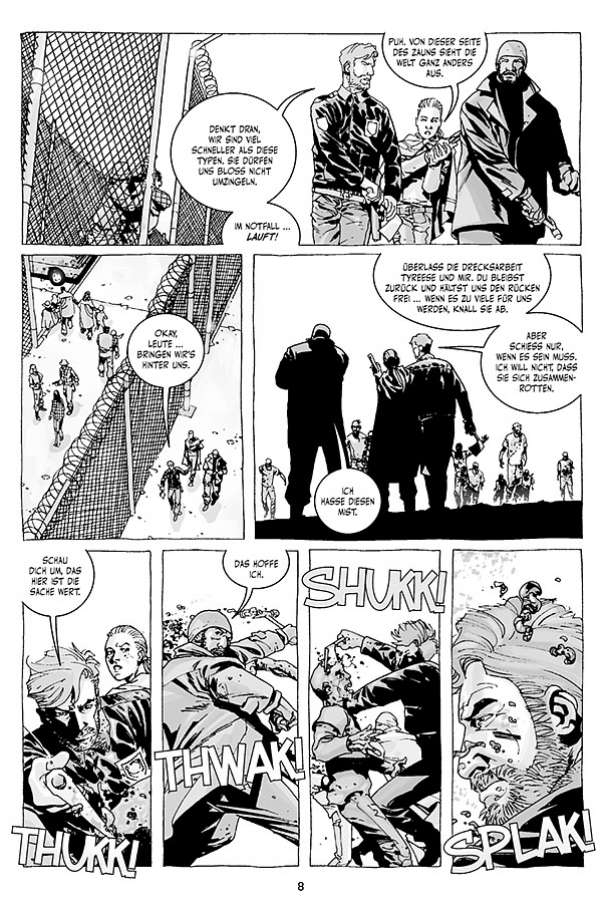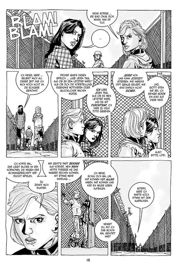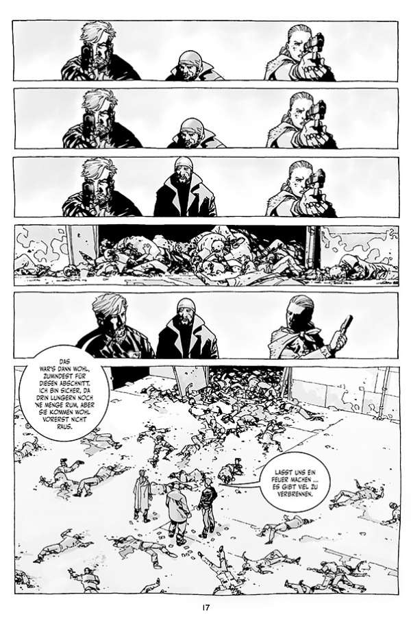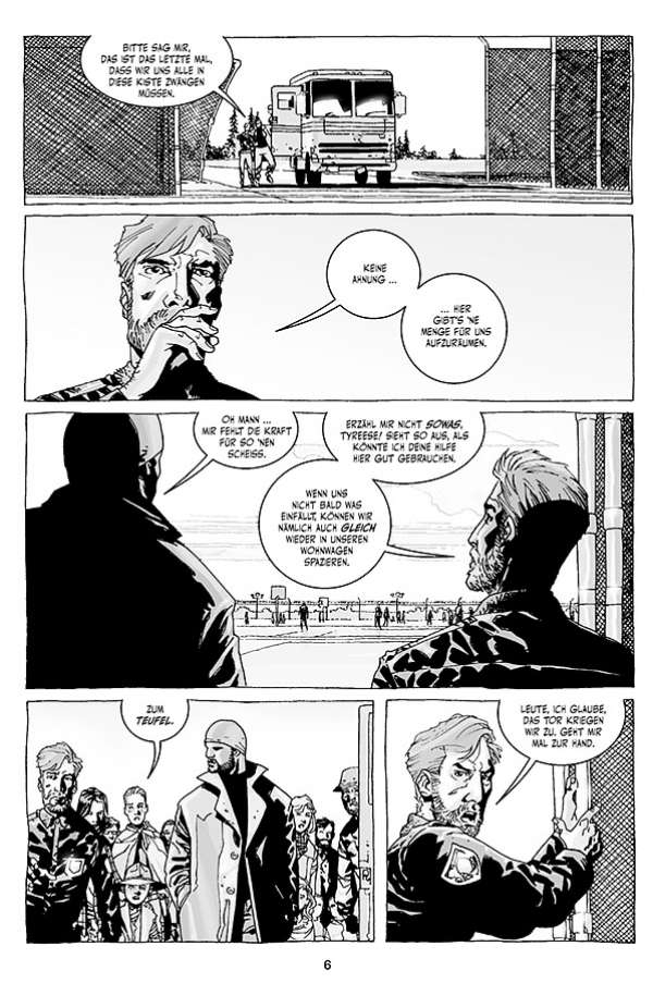 Bald überschlagen sich die Ereignisse, und die rettende Zuflucht hinter Gittern und Zäunen wird zur mörderischen Falle. An einem Ort, der einst als Gefängnis der von der Gesellschaft Verurteilten und Ausgestoßenen diente, sieht Kleinstadtpolizist Rick sich mit seiner bisher größten Herausforderung konfrontiert: Erfordert eine radikal veränderte Welt auch radikale neue Regeln? Wer bestimmt diese Regeln und, wenn nötig, vollstreckt sie?
