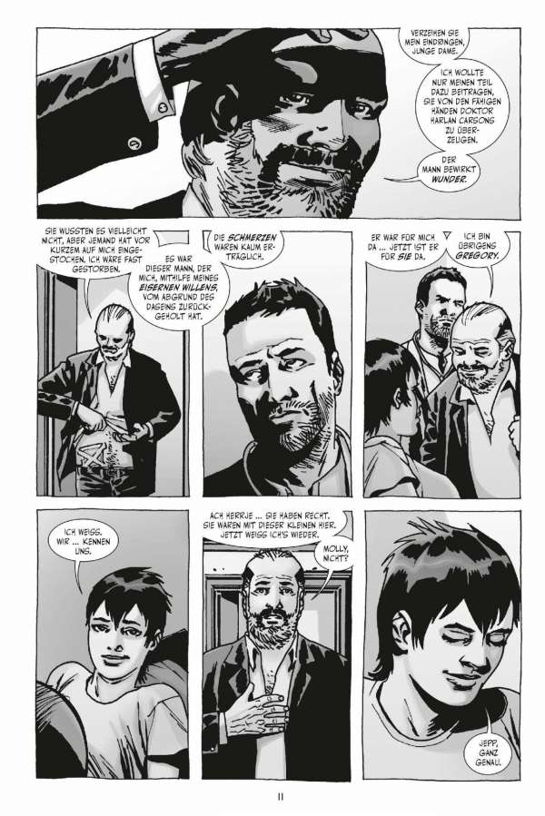 Ricks Stunde scheint gekommen, sich von Negan und seiner Armee, die er mit seinen perversen Regeln kontrolliert, zu … erlösen. Mit dem neuen Verbündeten Ezekiel, zu dem ihn Jesus führt und dem der Baseballschläger schwingende Bandenführer ebenfalls ein Dorn im Auge ist, sowie dem abtrünnigen Dwight, der sich schon zu lange vom selbstherrlichen Negan hat quälen lassen, beginnen sich die Rädchen zu drehen, die das Ende des Angst und Schrecken verbreitenden Tyrannen einleiten sollen. Doch Negan ist nicht auf den Kopf gefallen, und während Rick und seine Weggefährten in Alexandria weiterhin ihr doppeltes Spiel spielen, treibt er sein eigenes Spiel voran. Die Frage ist: Wer geht wem zuerst in die Falle?