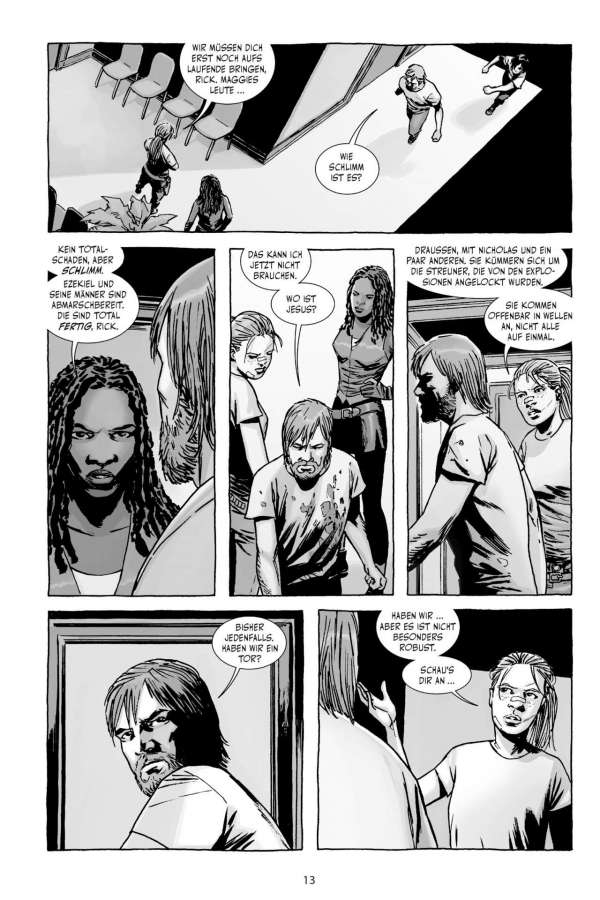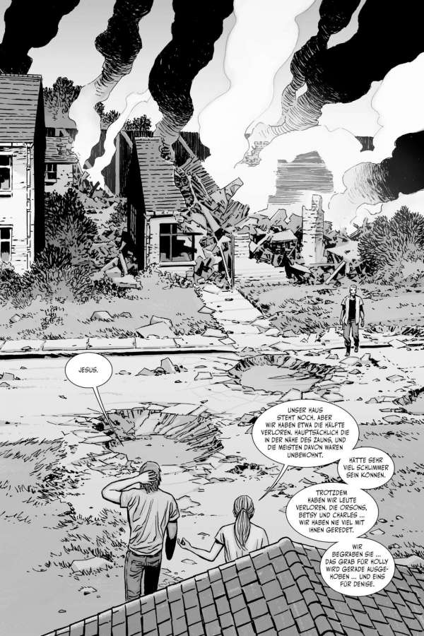 Rick, Ezekiel und ihre Schar von Freiheitskämpfern haben Negan den Krieg erklärt, und dieser nimmt die Herausforderung dankend an! Der machiavellische Dispot und seine Erlöser wurden in die Ecke gedrängt, doch die kleine Armee, die sich ein für alle Mal von diesem Wahnsinnigen befreien wollte, konnte trotz des Himmelfahrtskommandos durch Holly, die mit einem Fahrzeug sämtliche Barrieren durchbrach, nicht den letzten Treffer landen … und so holt Negan zu seinem Vergeltungsschlag aus, der Alexandria von der Bildfläche wegfegen wird!