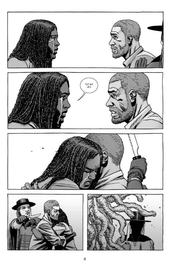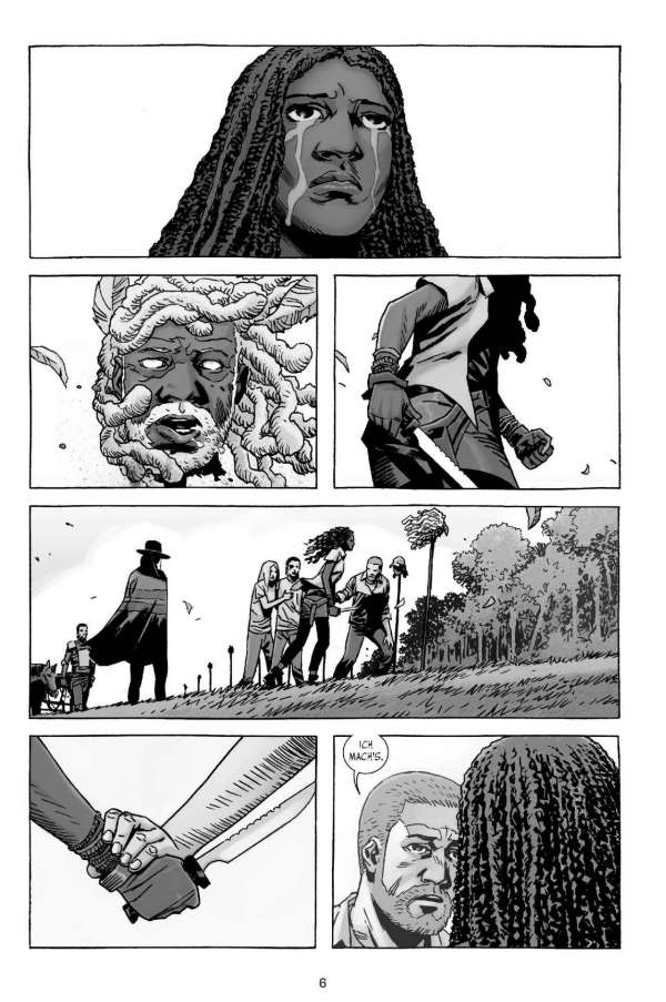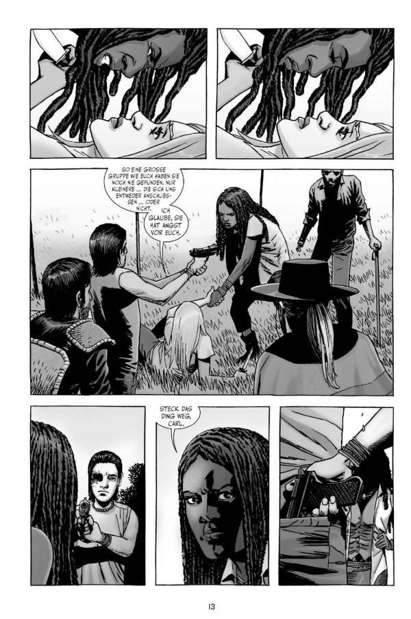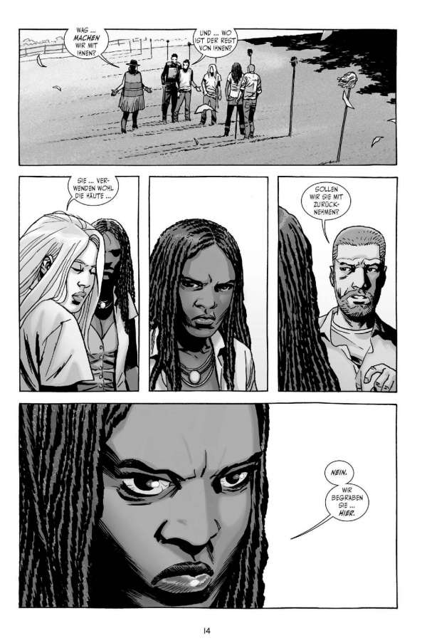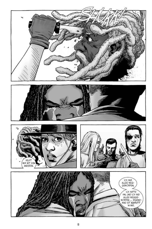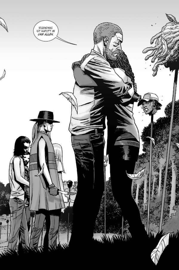 Wo etwas zu Ende geht, entsteht auch Platz für etwas Neues … Wie die sensationell erfolgreiche TV-Serie weiß das Comicoriginal schon länger durch authentische und vielschichtige Figuren, spannende Dialoge und Actionszenen sowie eine gnadenlose Story zu überzeugen. Der Mix aus Endzeit-Horror, Neo-Western und Kammerspiel fasziniert weltweit das Publikum. Wenn man von modernen Comicklassikern spricht, kommt man an dieser bereits mehr als 3.000-seitigen Comicsaga in Schwarz-Weiß einfach nicht vorbei! Während der frühere Anführer der „Erlöser“ in seiner Gefängniszelle in Alexandria schmort und versucht, eine geheimnisvolle Gruppe von Neuankömmlingen auf seine Seite zu ziehen, sehen sich immer mehr Späher plötzlich umzingelt von seltsam „maskierten“ Untoten …  Der Sammelband wird die US-Hefte 133-138 enthalten.