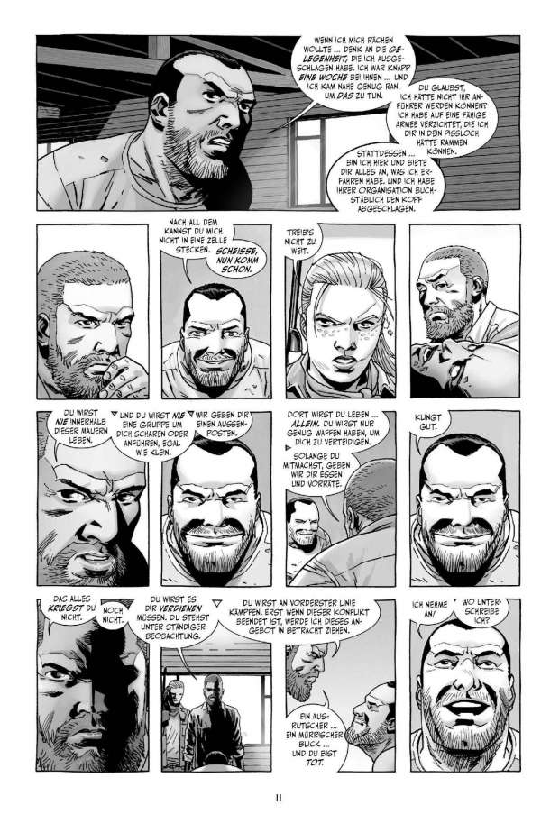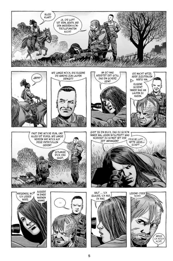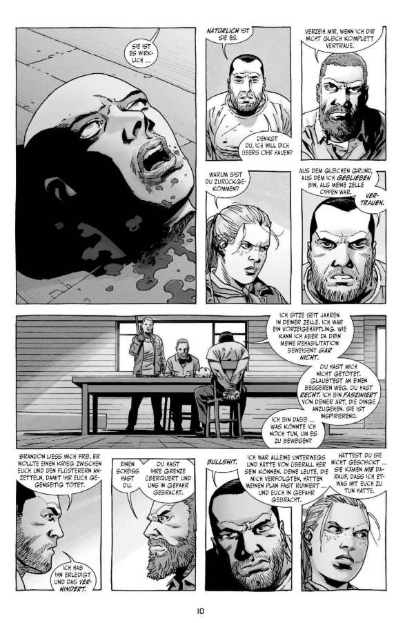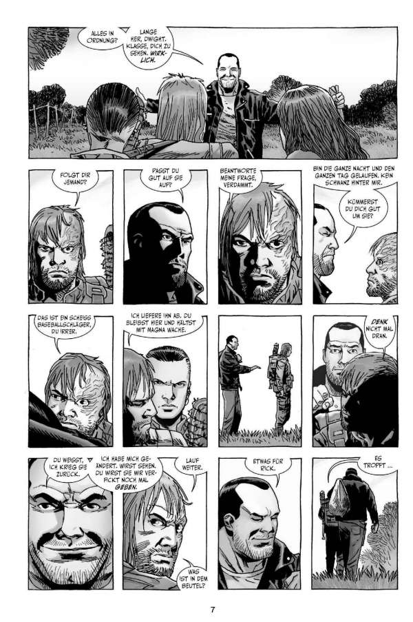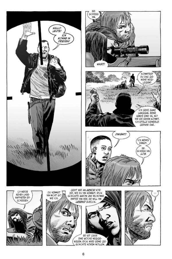 Nachdem Negan kurzerhand Alpha, die Anführerin der Flüsterer, abgemurkst hat, kehrt er zu Rick und den anderen Überlebenden zurück. Nebst so einigen Tatsachen legt er auch Alphas Kopf auf den Tisch und startet die Verhandlungen. Ein Krieg mit den Flüsterern scheint durch Negans unbedachte Tat unvermeidlich. Oder war diese Tat vielleicht gar nicht so unbedacht? Nur die Zeit wird zeigen, was der charismatische Psychopath wirklich wieder im Schilde führt.