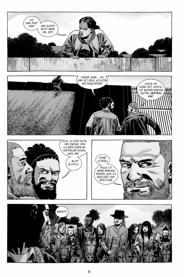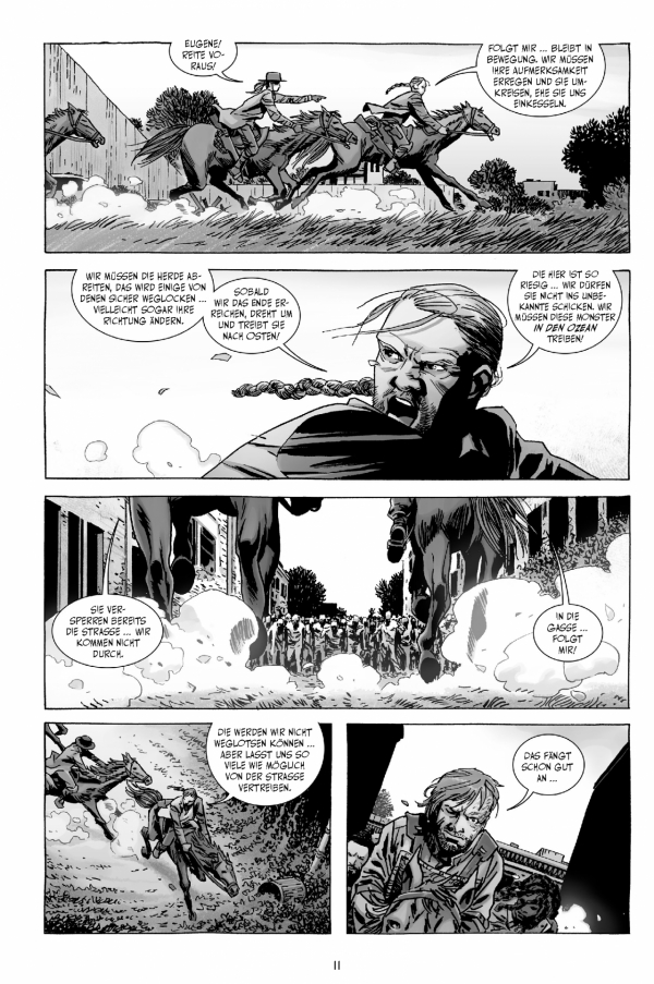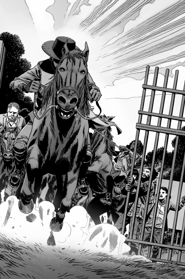 Eine gigantische Herde Streuner steuert direkt auf Alexandria zu. Rick, Dwight, Andrea und viele weitere Freiwillige schwingen sich auf ihre Pferde, um die Herde von der Stadt abzulenken. Doch das ist leichter gesagt als getan – und fordert viele Tote. Als sogar Rick von den Streunern übermannt wird, scheint alle Hoffnung verloren. Doch dann bekommt Rick unerwartete Hilfe ... in Gestalt von Negan!