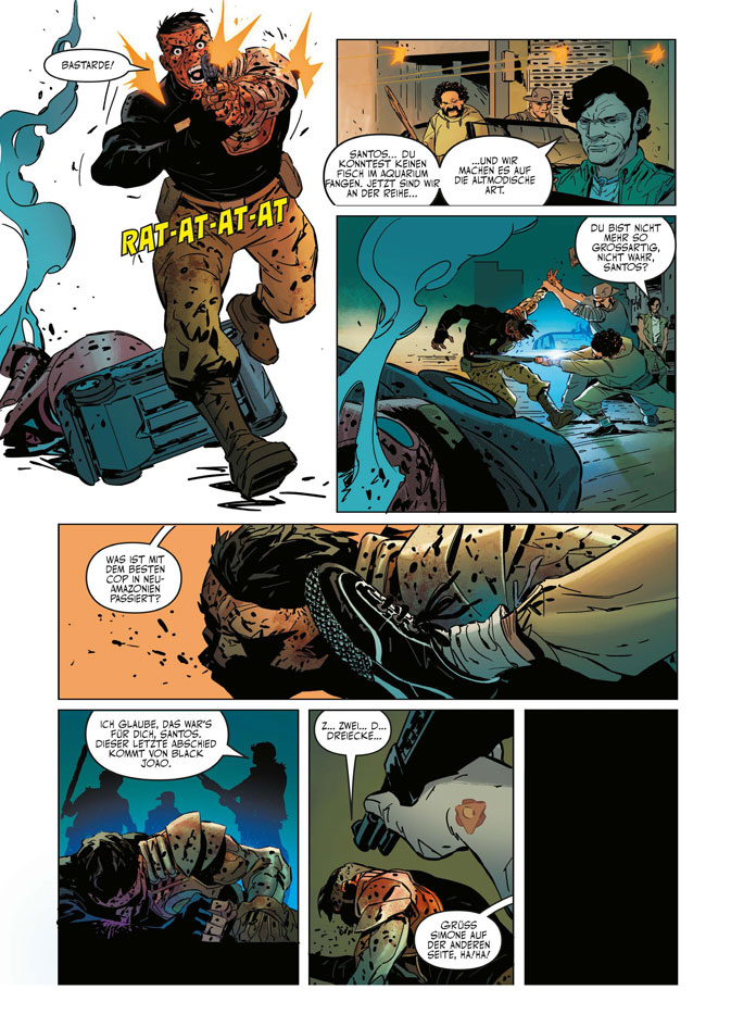 Im futuristischen Staat Neu-Amazonien breitet sich eine neue synthetische Droge aus und hinterlässt eine Spur der Verwüstung. Sie verspricht den Menschen alles, wovon sie träumen, doch fünf Tage später sterben sie unter schrecklichen Qualen. Die Kommissarin von menschlichen und robotischen Ordnungskräften entdeckt eine Verbindung zu einer Mordserie, die vor 20 Jahren stattfand und bei der ihre Schwester ums Leben kam. Widerwillig kontaktiert sie den legendären Joe Santos, den ehemaligen Partner ihrer Schwester. Zusammen mit einem Androiden, der seine körperlichen Schwächen ausgleicht, taucht er erneut in die dunklen Tiefen der Ermittlungen ein, die einst sein Leben zerstörten. Ein packender Thriller über Macht und Überleben in einer Welt, in der niemandem zu trauen ist.