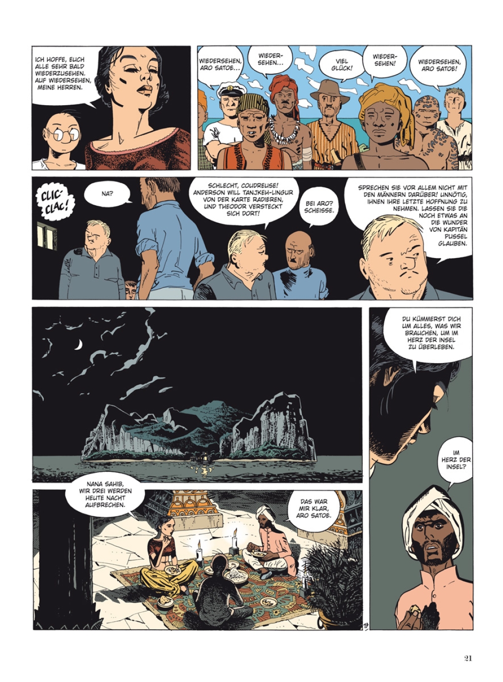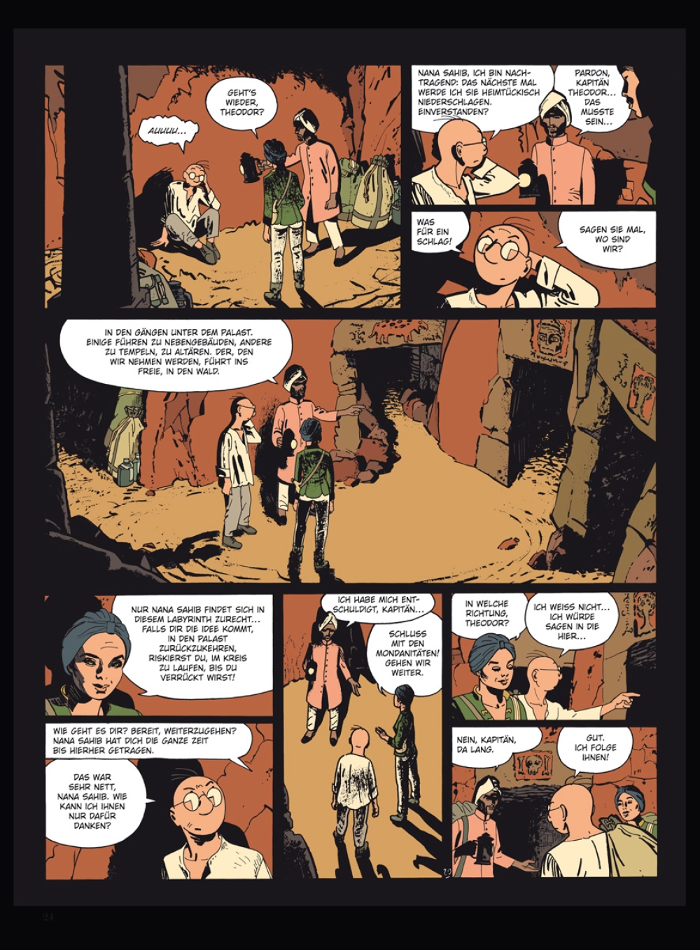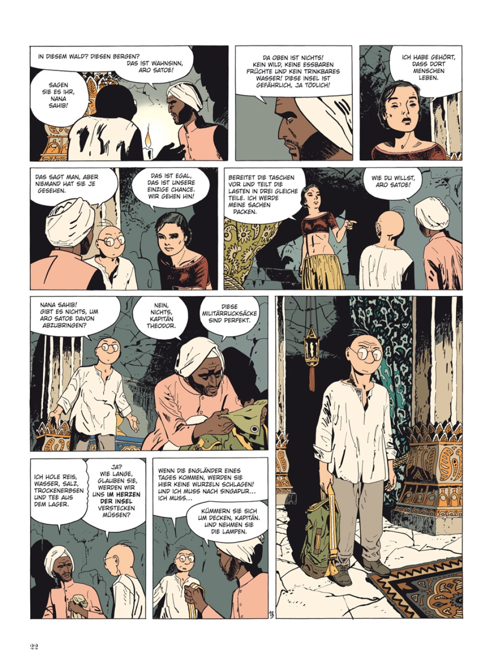 Aro Satoe und Theodor retten sich mit Nana Sahib in den Dschungel und in das Höhlensystem der Insel.