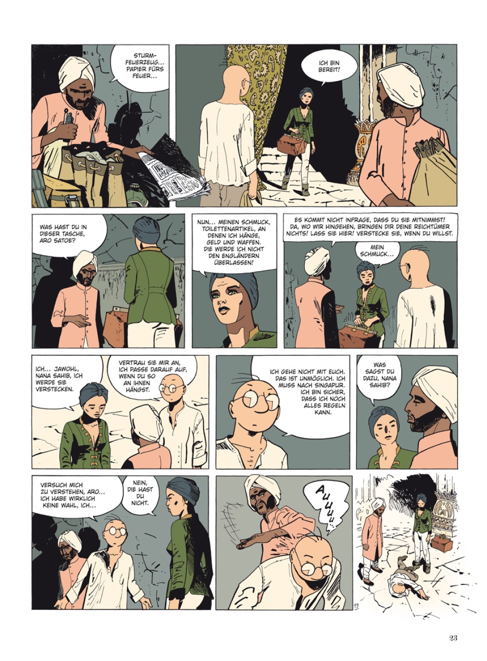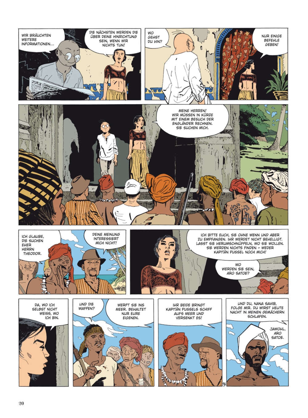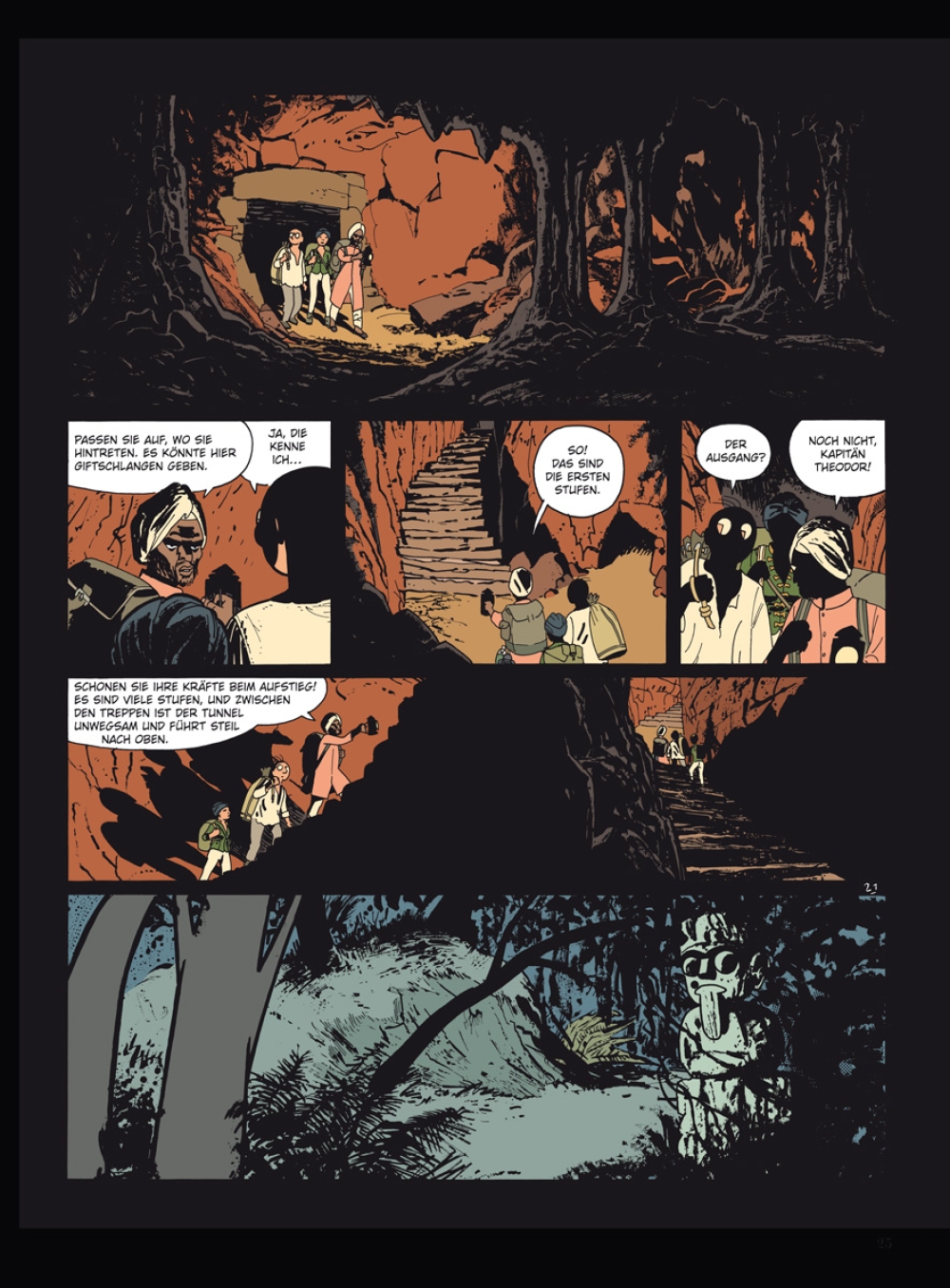 Aro Satoe und Theodor retten sich mit Nana Sahib in den Dschungel und in das Höhlensystem der Insel.