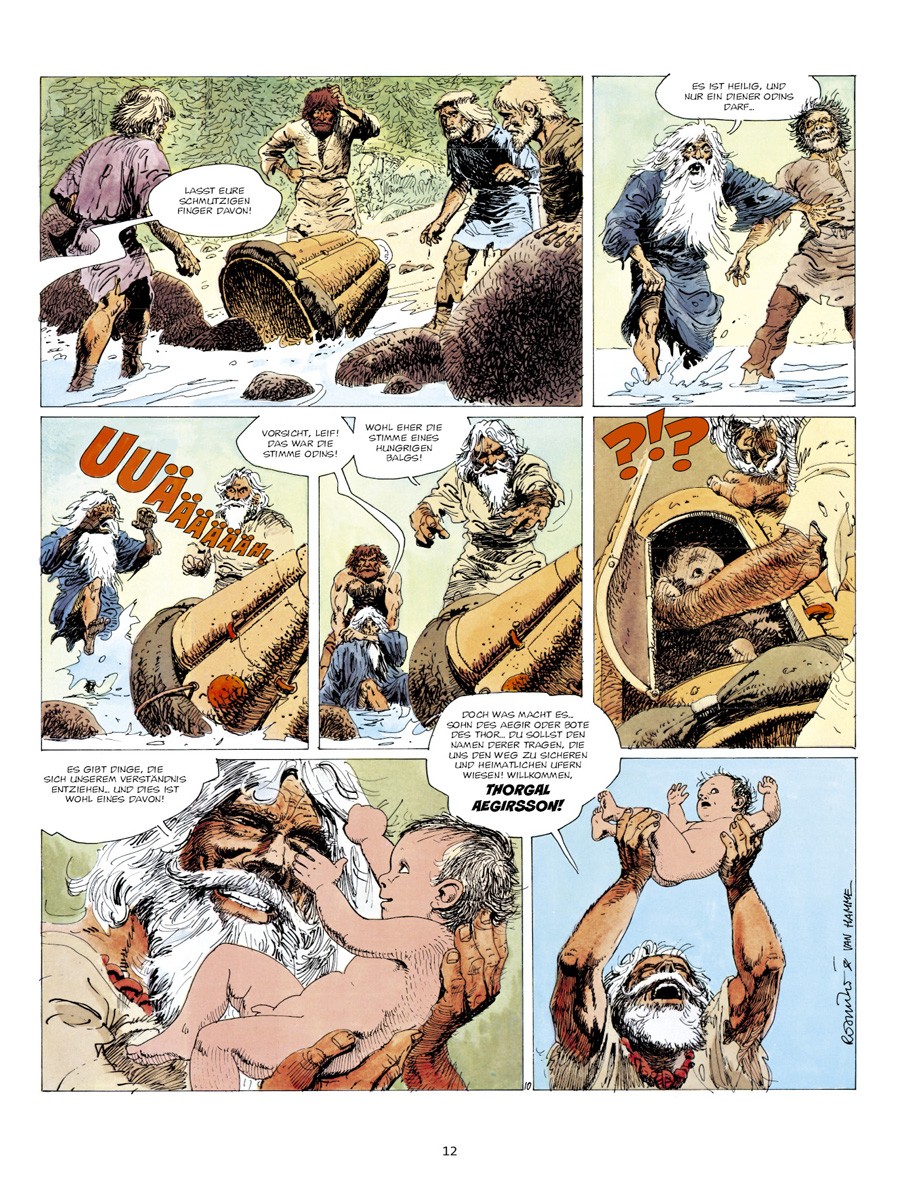 Von einem Sturm auf hoher See überrascht, entdeckt eine Truppe von Wikingern ein Baby in einem merkwürdigen Boot. Das gerettete Kind wird auf den Namen Thorgal Ägirsson getauft.