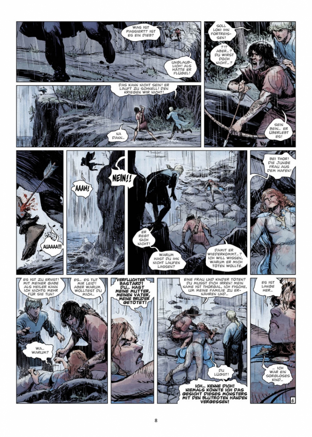 Von einem Sturm auf hoher See überrascht, entdeckt eine Truppe von Wikingern ein Baby in einem merkwürdigen Boot. Das gerettete Kind wird auf den Namen Thorgal Ägirsson getauft. Seine Geschichte ist die eines Mannes, dem die Götter eine schwere Prüfung auferlegten, und der im Laufe seiner Abenteuer das Geheimnis seiner Ursprünge enthüllt. Dem Zorn der Götter und dem Neid der Menschen ausgeliefert, ist er gezwungen, sich mit machtgierigen Herrschern, bornierten Göttern, Fabelwesen, Naturgewalten und Fanatikern auseinanderzusetzen. Obwohl er oft die unglaublichsten Heldentaten vollbringt, ist er im Grunde seines Herzens ein besonnener Mensch, der in Ruhe im Schoß seiner Familie leben will. Doch immer wieder wird er gezwungen, sich der rauen Welt und ihren Herausforderungen zu stellen, um seine Existenz zu verteidigen."