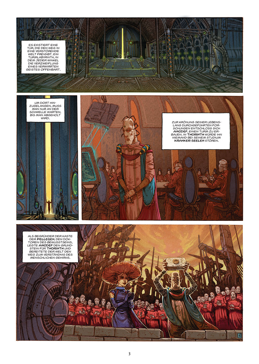 Thorinth wurde einst von dem Wissenschaftler Amodef erschaffen, um das menschliche Bewusstsein zu erforschen. Doch die ehrgeizige Architektin Esiath missbrauchte das fantastische Konstrukt für ihre eigenen Projekte. Sie formte einen Golem, der alle Seelen in seiner Umgebung in sich aufsog und die Herrschaft über das Labyrinth übernahm.