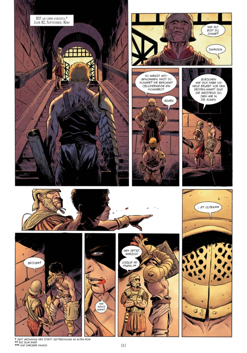 In »Thrax« vermischen sich Historien- und Erotik-Comic völlig mühelos zu einer spannenden Lektüre, die authentische Darstellungen der antiken Gesellschaft ebenso gut auf die Buchseiten bannt wie dramatische Wendungen und sinnliches Liebesspiel.