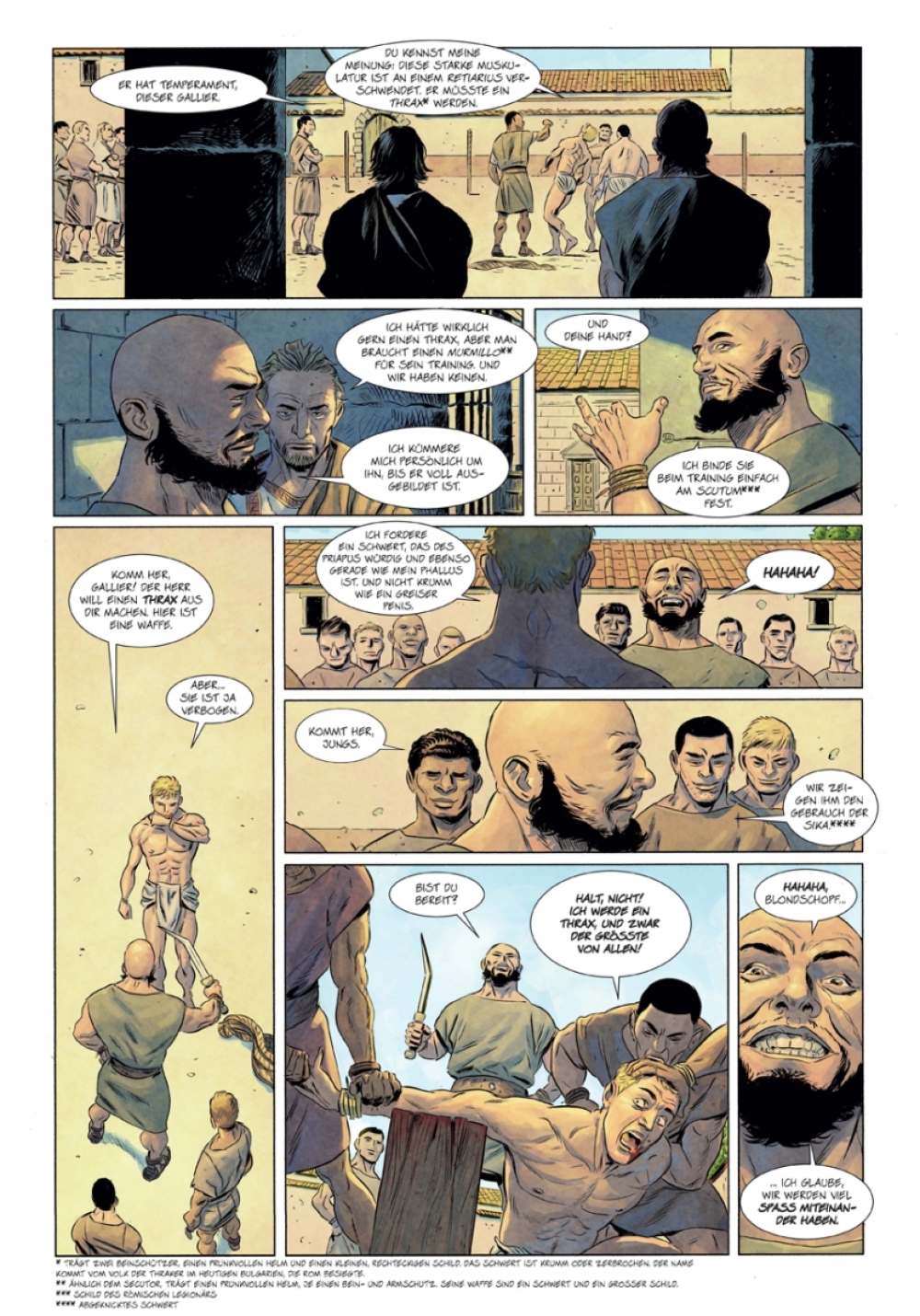 In »Thrax« vermischen sich Historien- und Erotik-Comic völlig mühelos zu einer spannenden Lektüre, die authentische Darstellungen der antiken Gesellschaft ebenso gut auf die Buchseiten bannt wie dramatische Wendungen und sinnliches Liebesspiel.
