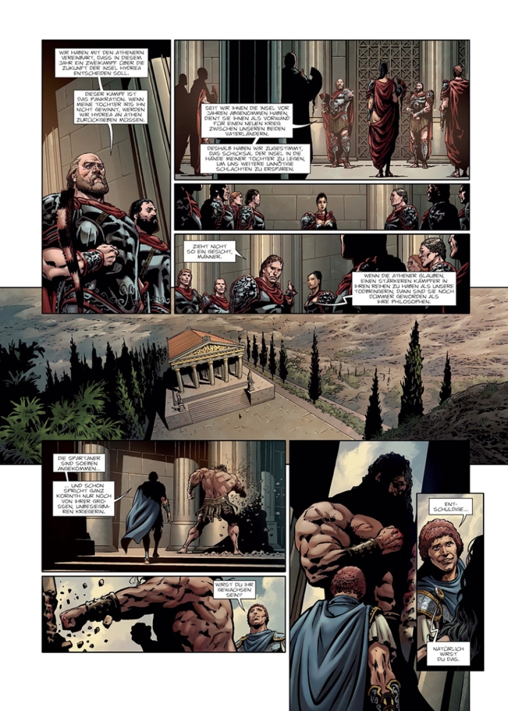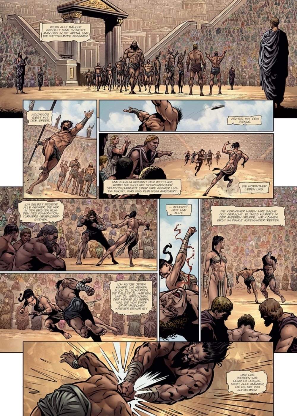 Sie wird von Soldaten gefürchtet, von Generälen verehrt, von der Menge geliebt: Iris ist der Stolz Spartas, eine unvergleichliche Kriegerin, die noch nie im Kampf besiegt wurde. Doch als sie ihre Nation bei der Olympiade vertritt, steht sie einem Gegner gegenüber, der übernatürliche Kräfte besitzt, und muss sich geschlagen geben. Diese erste, einzige Niederlage bedeutet für Iris das Exil. Sie ertränkt ihre Schande erst in Wein und Blut, danach sucht sie Vergebung und schließlich den Tod… bis sie herausfindet, dass ihre Niederlage kein Zufall war: Die Götter haben sie in ihrem ewigen Kampf gegen die Titanen zum Spielball gemacht. Doch das wird Iris nicht akzeptieren. Niemand legt sich mit einer Spartanerin an, nicht einmal die verdammten Götter!
