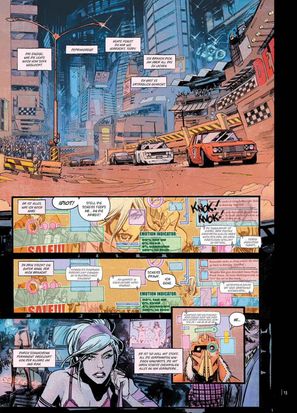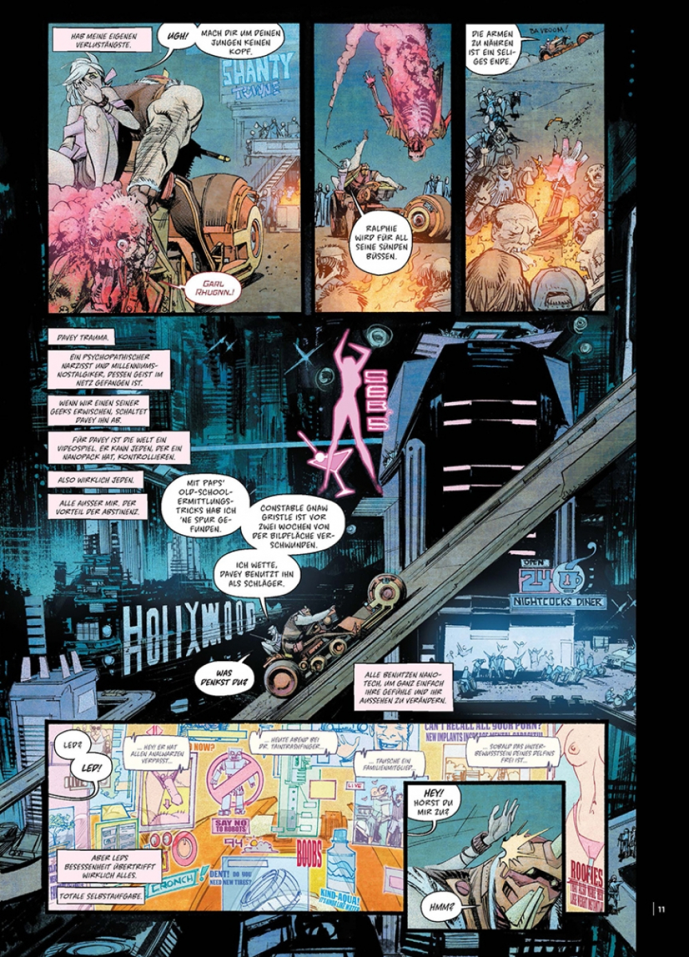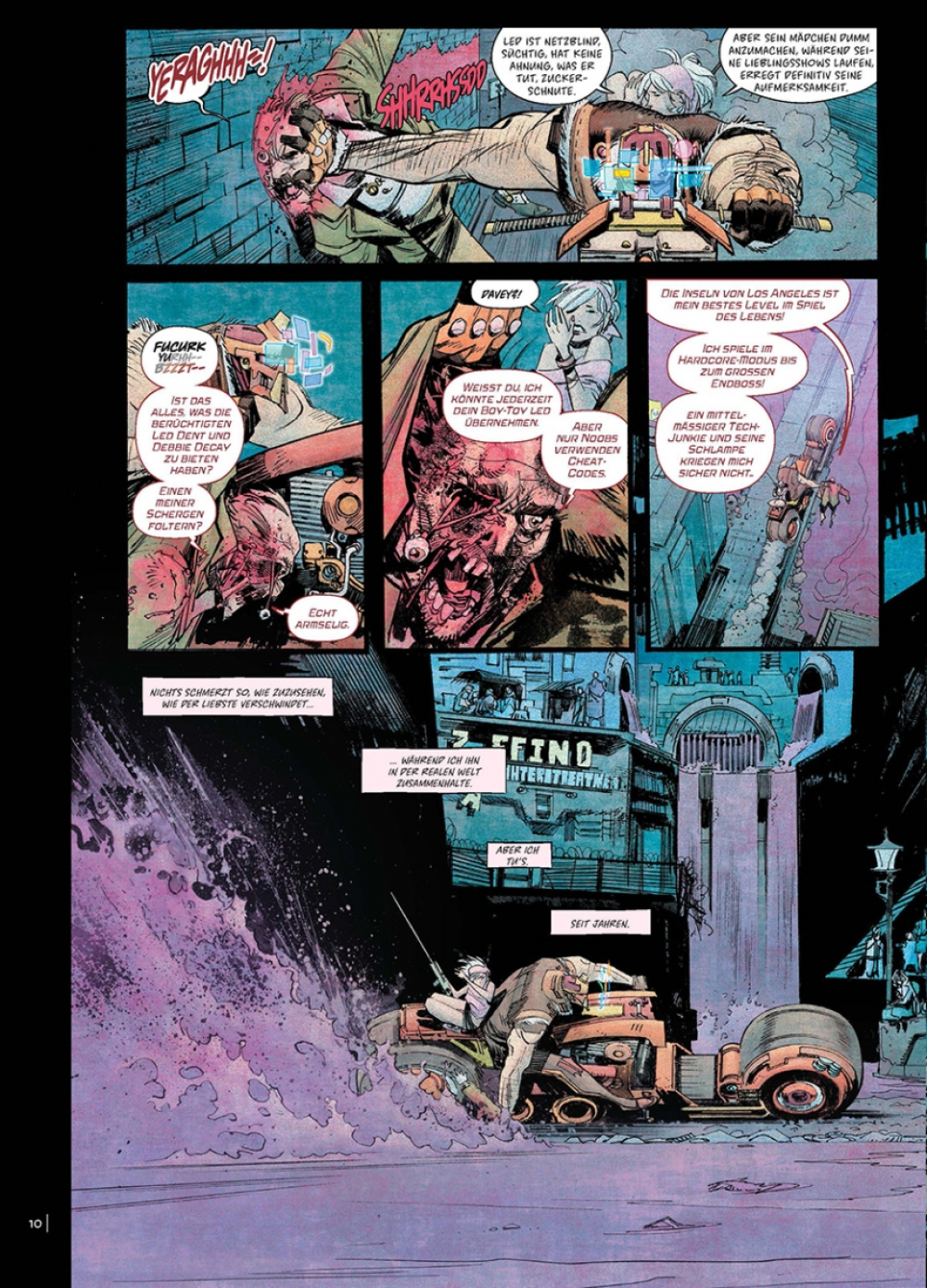 Los Angeles, 2089. Die Menschheit ist süchtig nach Technologie, ihrer letzten, ihrer einzigen Droge. Heere arbeitsloser Vergnügungsjunkies flüchten in virtuelle Rauschzustände, um der toxischen Welt, die ihre Realität darstellt, zu entfliehen. Technologie ist das Einzige, wofür es sich zu leben lohnt, die mächtigste Industrie, die einzige Industrie – die natürlich vollständig in der Hand von Gangstern ist. Und wenn die einen Job zu erledigen haben, sind Led Dent und Debbie Decay zur Stelle. Sogar wenn sie dafür L. A. verlassen und in die letzte Low-Tech-Region der Erde reisen müssen: den Gartenstaat Tokio.