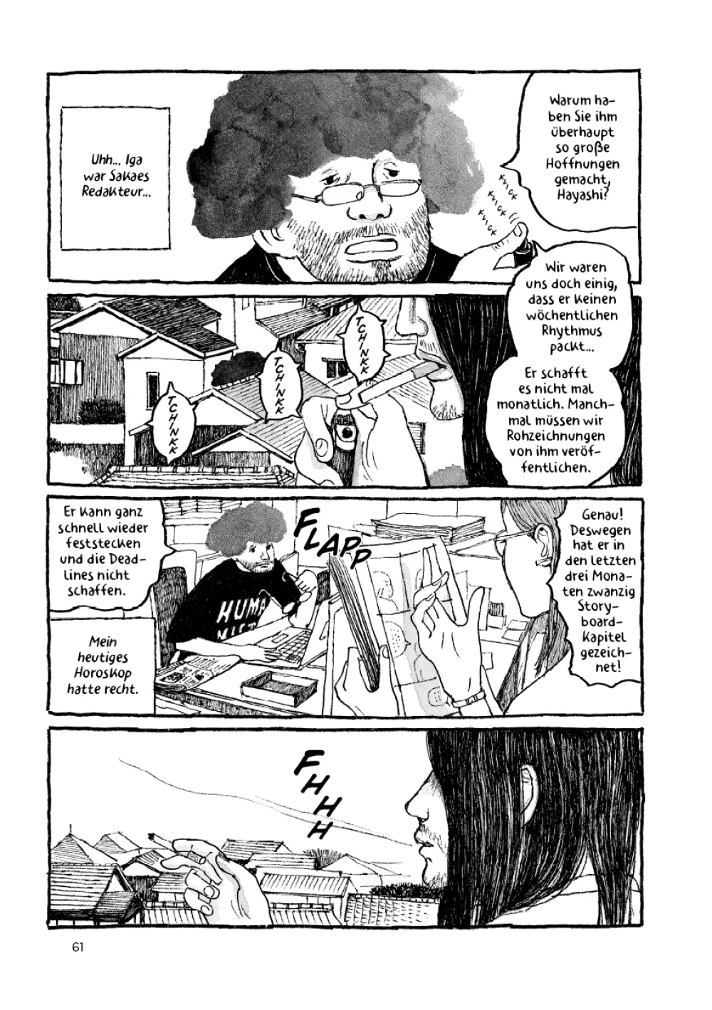 Taiyo Matsumoto verwandelt seine eigenen Erfahrungen mit den komplexen Arbeitsabläufen in der Manga-Welt in eine poetische Betrachtung der Bande zwischen Manga-Schöpfern und ihren Redakteuren, der Kunst und des Lebensgefühls im heutigen Tokyo.