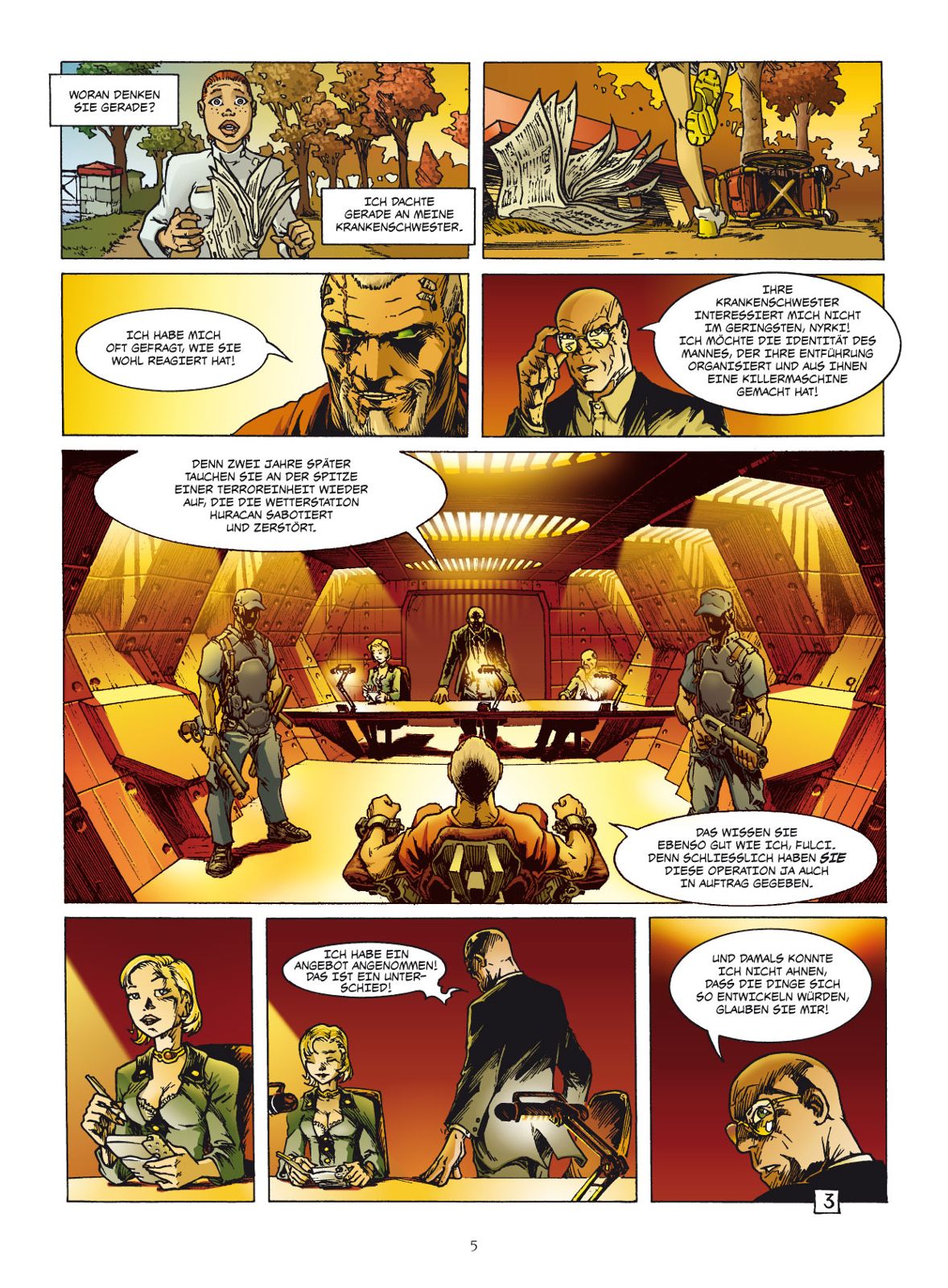 Die beiden weltgrößten Nahrungsmittelkonzerne Baxter & Martin und Transgenic stehen sich in einem offenen Konflikt gegenüber, der in einen Krieg münden könnte. Nachdem aber Baxter & Martin Beweise finden, dass die Söldner die Wetter-Raumstation Huracan im Auftrag von Transgenic zerstört haben und Transgenic wiederum belegen kann, dass dieselben Söldner im Auftrag von Baxter & Martin Ariane 7 abstürzen ließen, sieht alles endlich nach einer friedlichen Einigung aus.