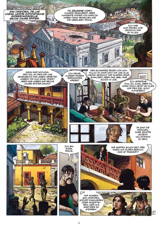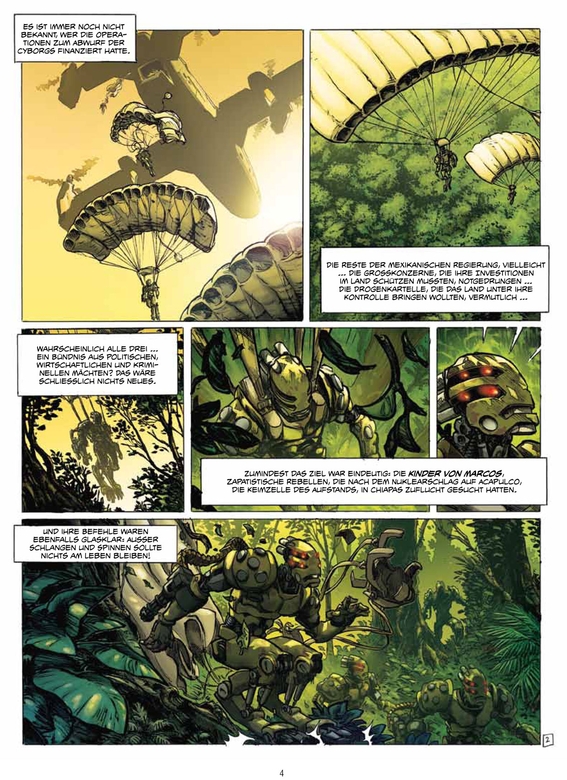 Juni 2054: Während die Drogenkartelle im Begriff sind, die Kontrolle über Mexiko zu gewinnen, gelingt es Vlad Nyrki, seinen ältesten Freund, der auf mysteriöse Weise in diesem Bürgerkriegsgebiet verschwunden ist, wiederzufinden. Doch er entdeckt einen Travis, der im Dschungel von Chiapas bei den Kindern von Marcos Zuflucht gesucht hat und nun mit den zapatistischen Rebellen gegen die grausamen Narcos kämpft …