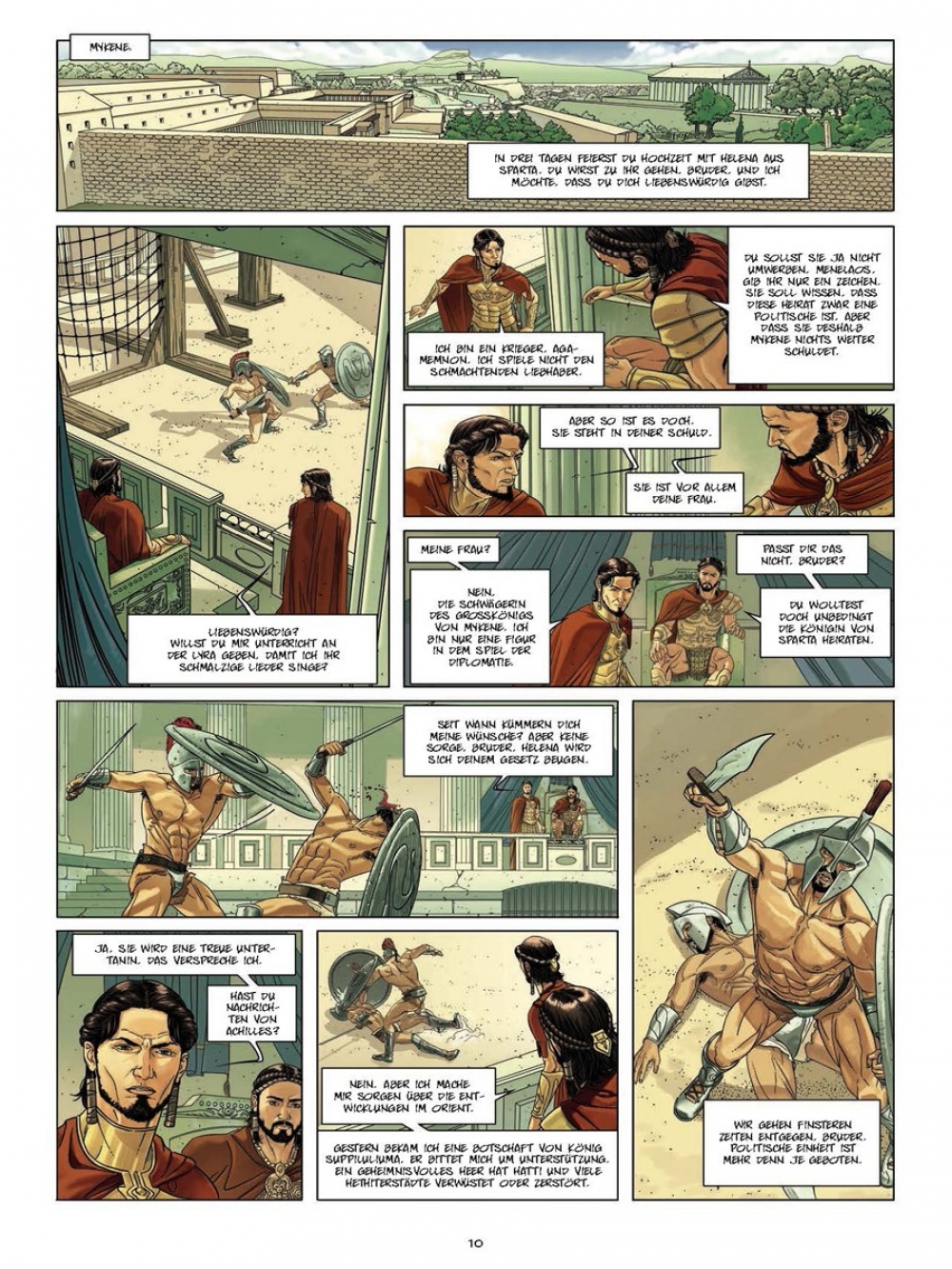 Achilles, der junge König von Phthia, und sein Cousin Patroklos sind unterwegs, um mithilfe von Tyndareos, dem König von Sparta, Mykene zu erobern. Bis über beide Ohren in Helena, Tyndareos Tochter, verliebt, weiß Achilles, dass eine Verbindung mit der jungen Frau für Agamemnon, dem mächtigen Herrscher von Mykene, eine Bedrohung darstellen würde. Daher kommt er ihm zuvor und stürzt sich in einen ehrgeizigen und wahnsinnigen Eroberungsplan. Doch unterwegs erwartet ihn eine Überraschung. Tyndareos wurde von einer bizarren Armee getötet, einer Art Aschewolke, die alles auf ihrem Weg vernichtet. Ein blutiges Machtspiel beginnt, der große Krieg scheint unvermeidlich...
