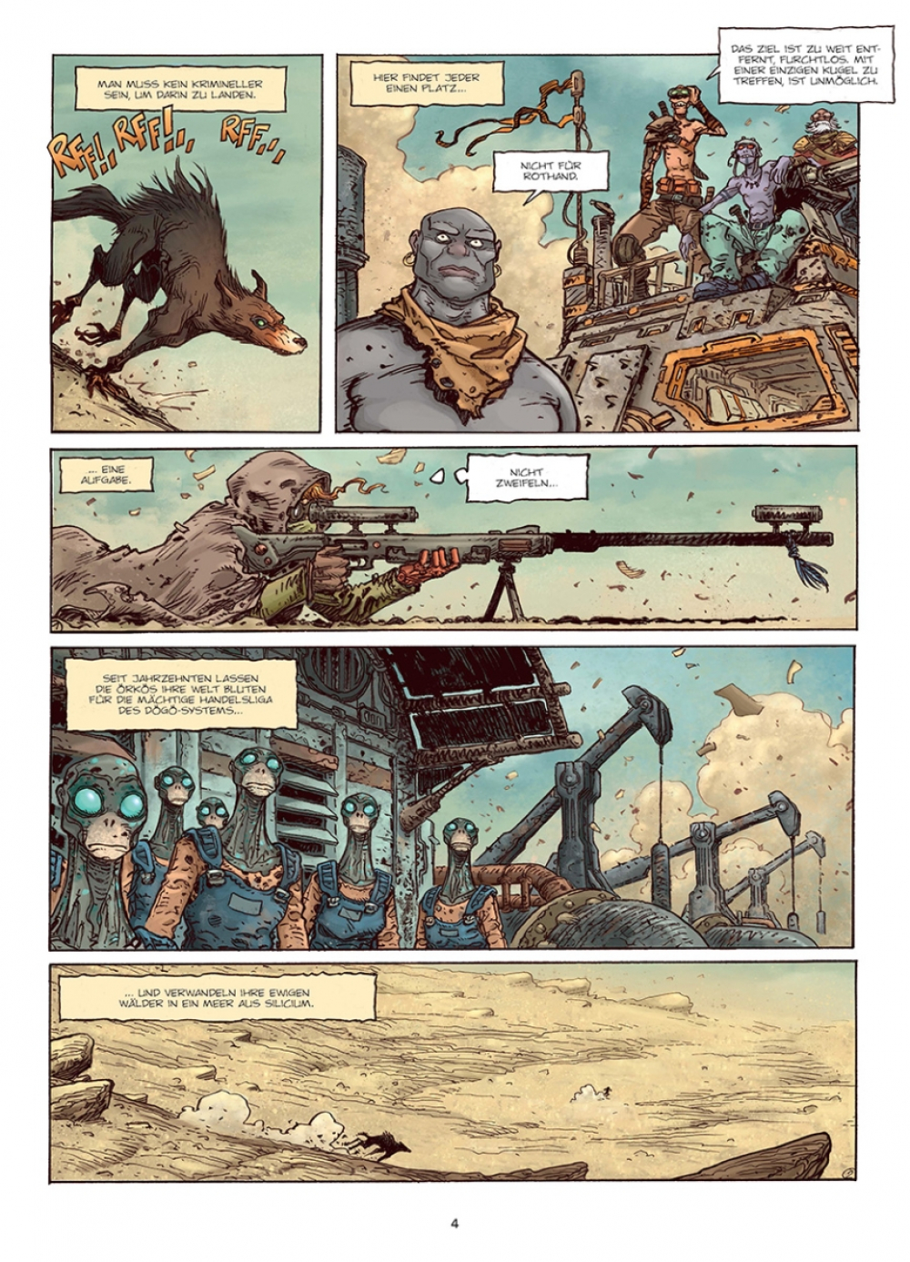 Jahre sind vergangen... Die UCC Dolores ist auf dem Wüstenplaneten Tishala gestrandet, wo unzählige Bohrtürme die reichen Bodenschätze für die mächtige Handelsliga fördern. Auf dieser Welt, die am Rand eines ökologischen Kollaps steht, ist Monys Tochter Luna schwer erkrankt, ihre Lungen wurden von Gift zerfressen. Die einzige Lösung wäre, Tishala schnellstmöglich zu verlassen, doch haben die toxischen Winde des Planeten das Navigationssystem der Dolores zerstört. Die Reparatur ist teuer, und so ist Mony gezwungen, ihre Fähigkeiten als Meisterschützin in den Dienst des berüchtigten Captain Sharkis und seiner gesetzlosen Söldnerarmee zu stellen...