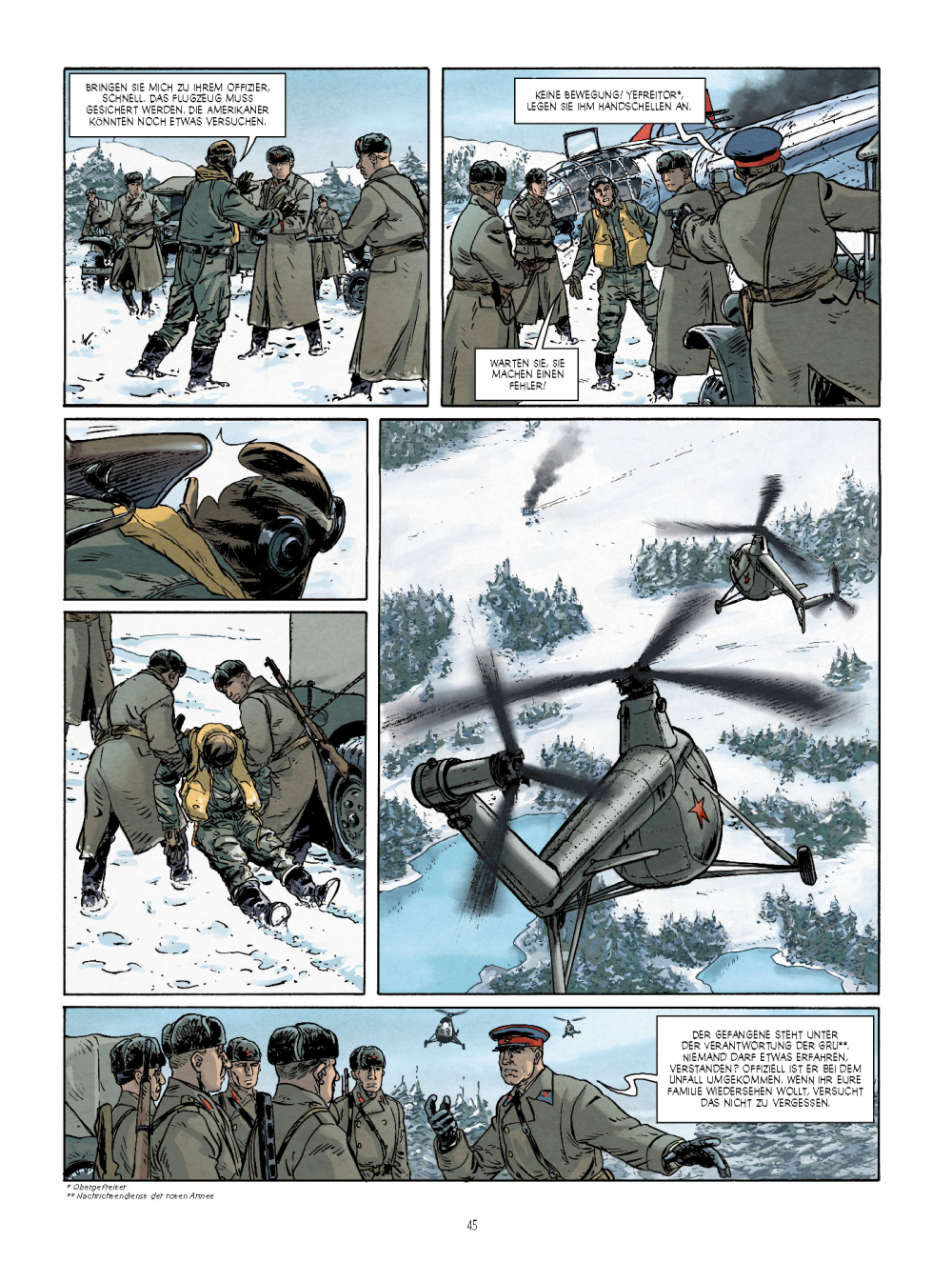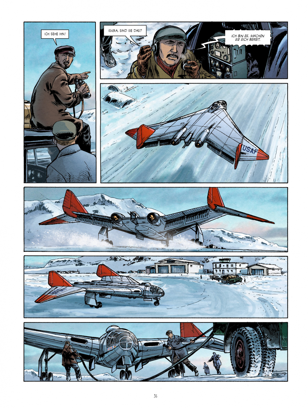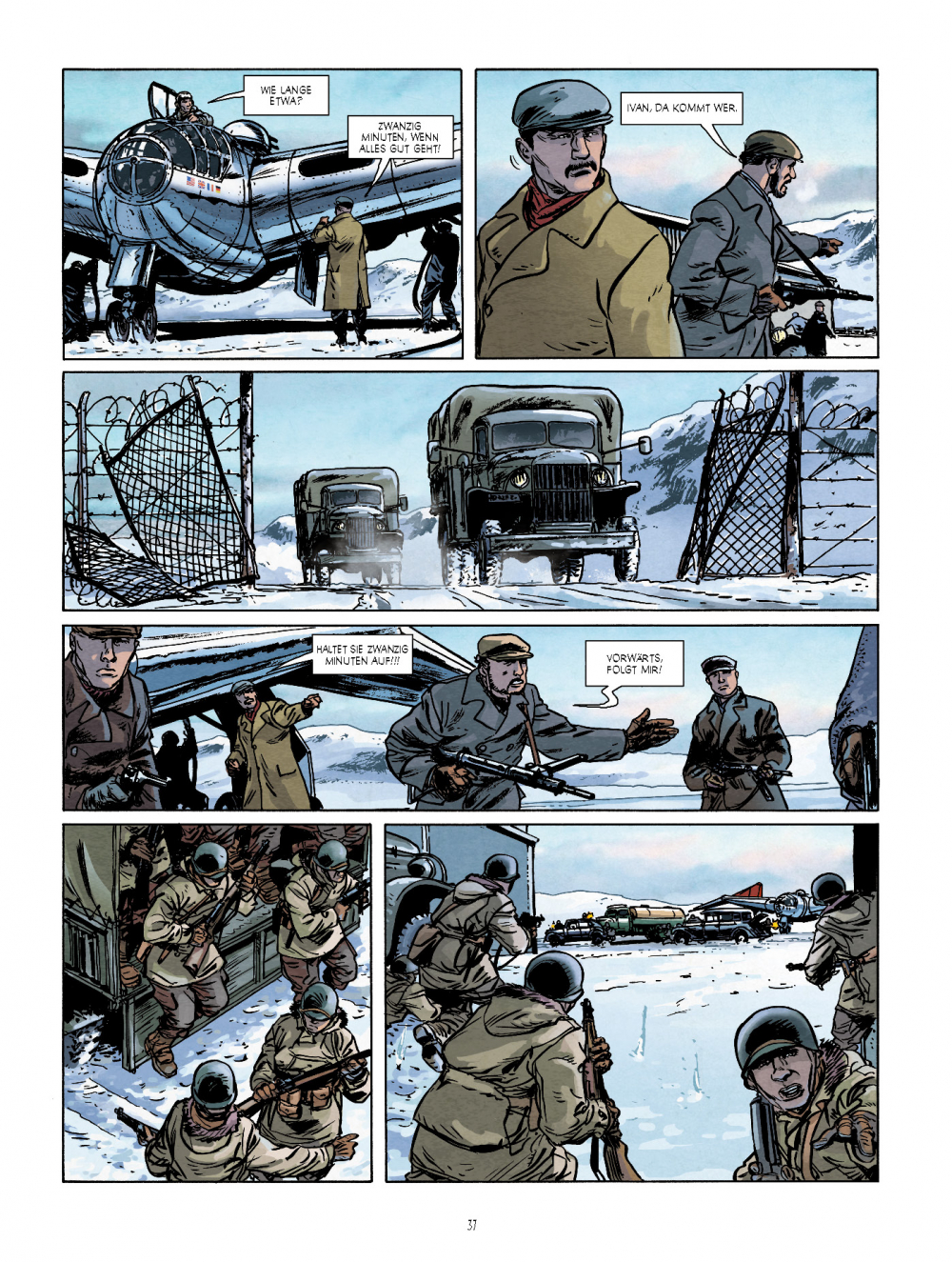 1948. Was wäre, wenn Frankreich versucht hätte, sich mit den Russen zu verbünden, um den USA entgegenzutreten und einen Dritten Weltkrieg zu vermeiden? Der Abschluss der dreiteiligen Alternativweltgeschichte von Pécau und Maza gehört zu den besten D-Day-Geschichten. Der Verdacht von CIA-Agent Angleton bestätigt sich, dass Nicolas Charlier in eine finstere Verschwörung verwickelt ist, als dieser mit dem Prototyp des Aurora-Bombers in Richtung UdSSR davonfliegt. In Moskau bereitet Beria seinerseits einen Putsch gegen Stalin vor, um einen Dritten Weltkrieg zu vermeiden. War der französische Pilot wirklich ein sowjetischer Spion? Oder verbergen sich hinter der gesamten Operation andere Motive?