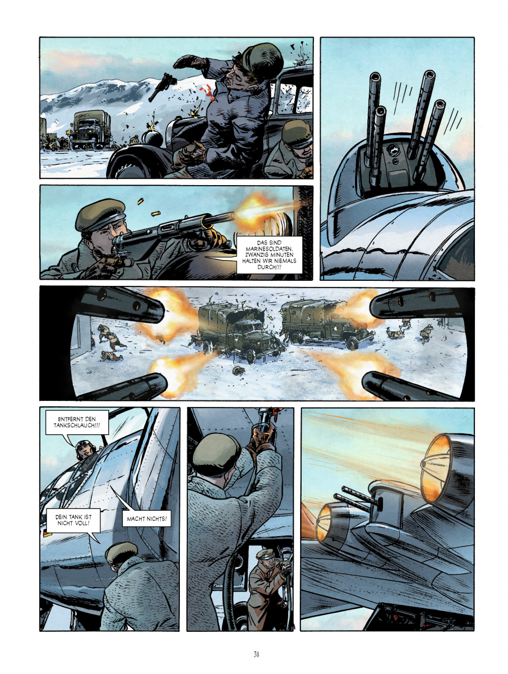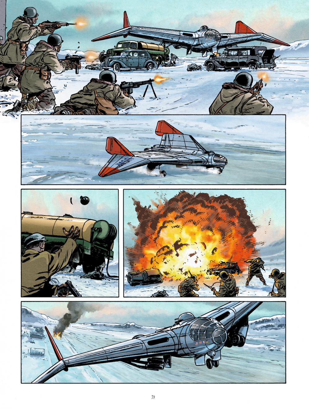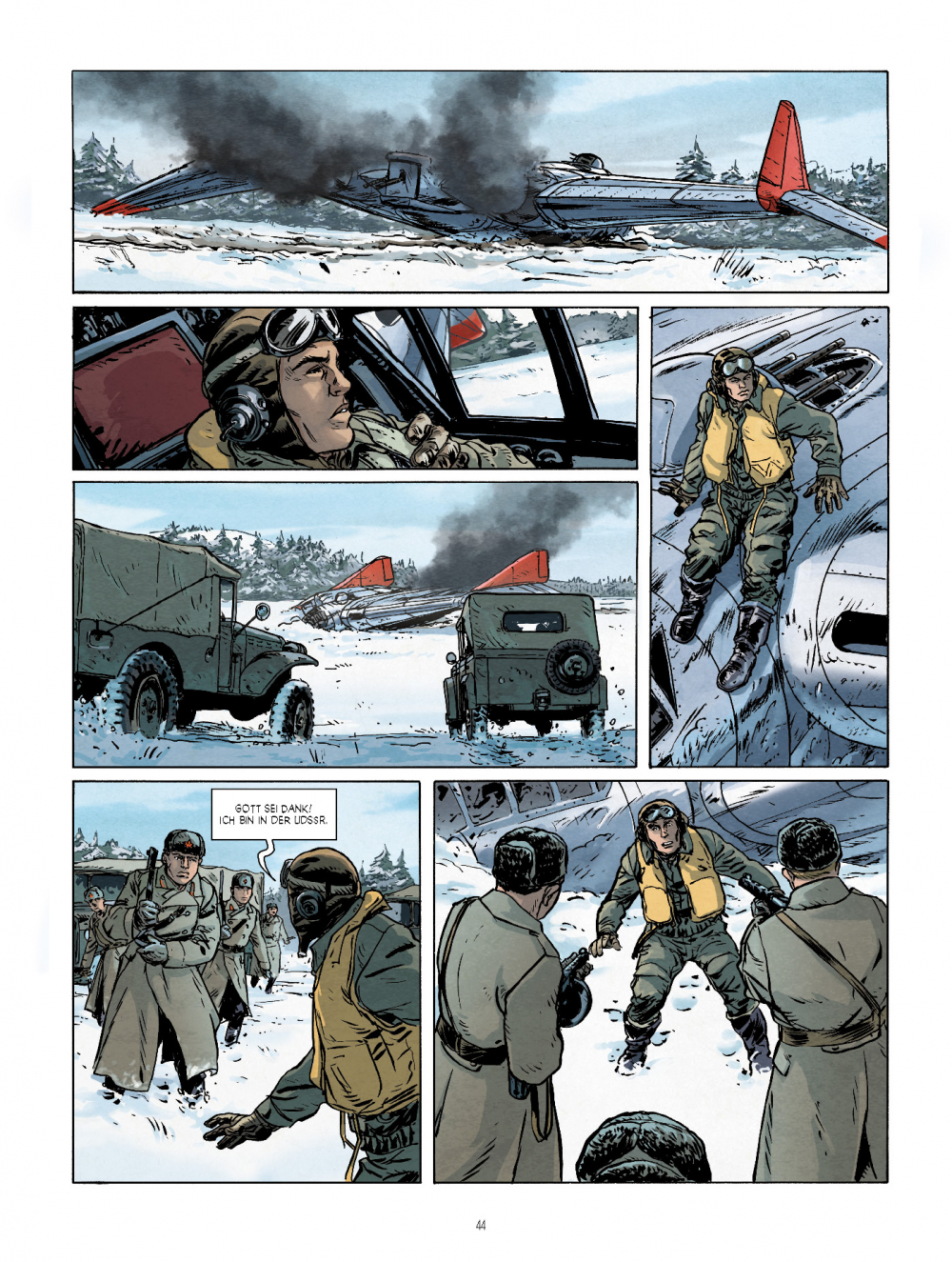 1948. Was wäre, wenn Frankreich versucht hätte, sich mit den Russen zu verbünden, um den USA entgegenzutreten und einen Dritten Weltkrieg zu vermeiden? Der Abschluss der dreiteiligen Alternativweltgeschichte von Pécau und Maza gehört zu den besten D-Day-Geschichten. Der Verdacht von CIA-Agent Angleton bestätigt sich, dass Nicolas Charlier in eine finstere Verschwörung verwickelt ist, als dieser mit dem Prototyp des Aurora-Bombers in Richtung UdSSR davonfliegt. In Moskau bereitet Beria seinerseits einen Putsch gegen Stalin vor, um einen Dritten Weltkrieg zu vermeiden. War der französische Pilot wirklich ein sowjetischer Spion? Oder verbergen sich hinter der gesamten Operation andere Motive?