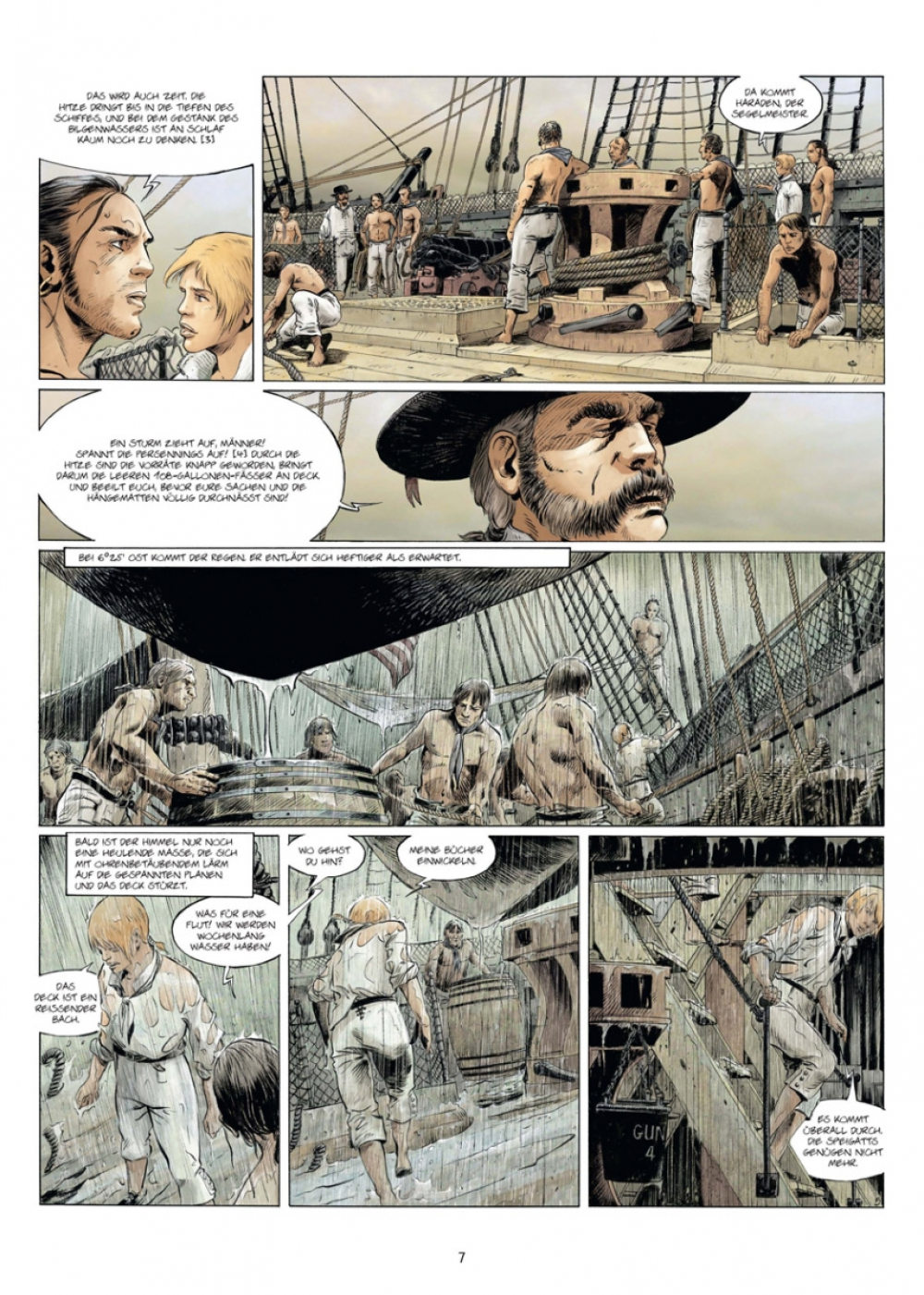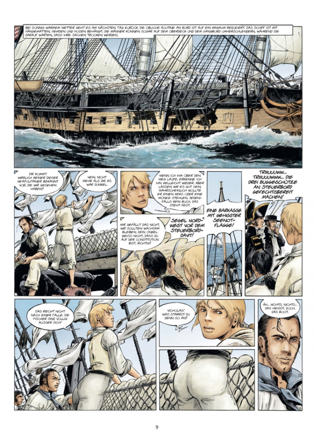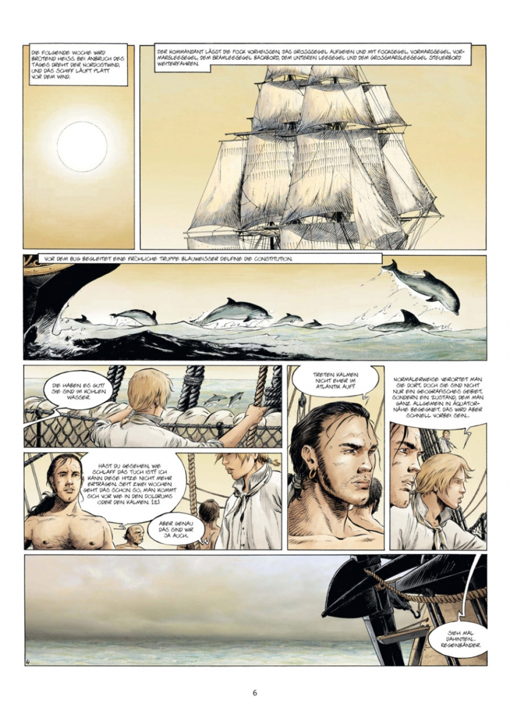Nachdem die USA die Unabhängigkeit von England erlangt hatte, verlor ihre Handelsflotte den Schutz der Royal Navy. Zahlreiche Piraten witterten leichte Beute, und um darauf zu reagieren, wurden mächtige Kriegsschiffe wie die USS Constitution gebaut. Franck Bonnet verknüpft detailverliebte Zeichnungen der majestätischen Schiffe mit der abenteuerlichen Reise eines jungen Offiziers zu einem einzigartigen maritimen Comic-Erlebnis.